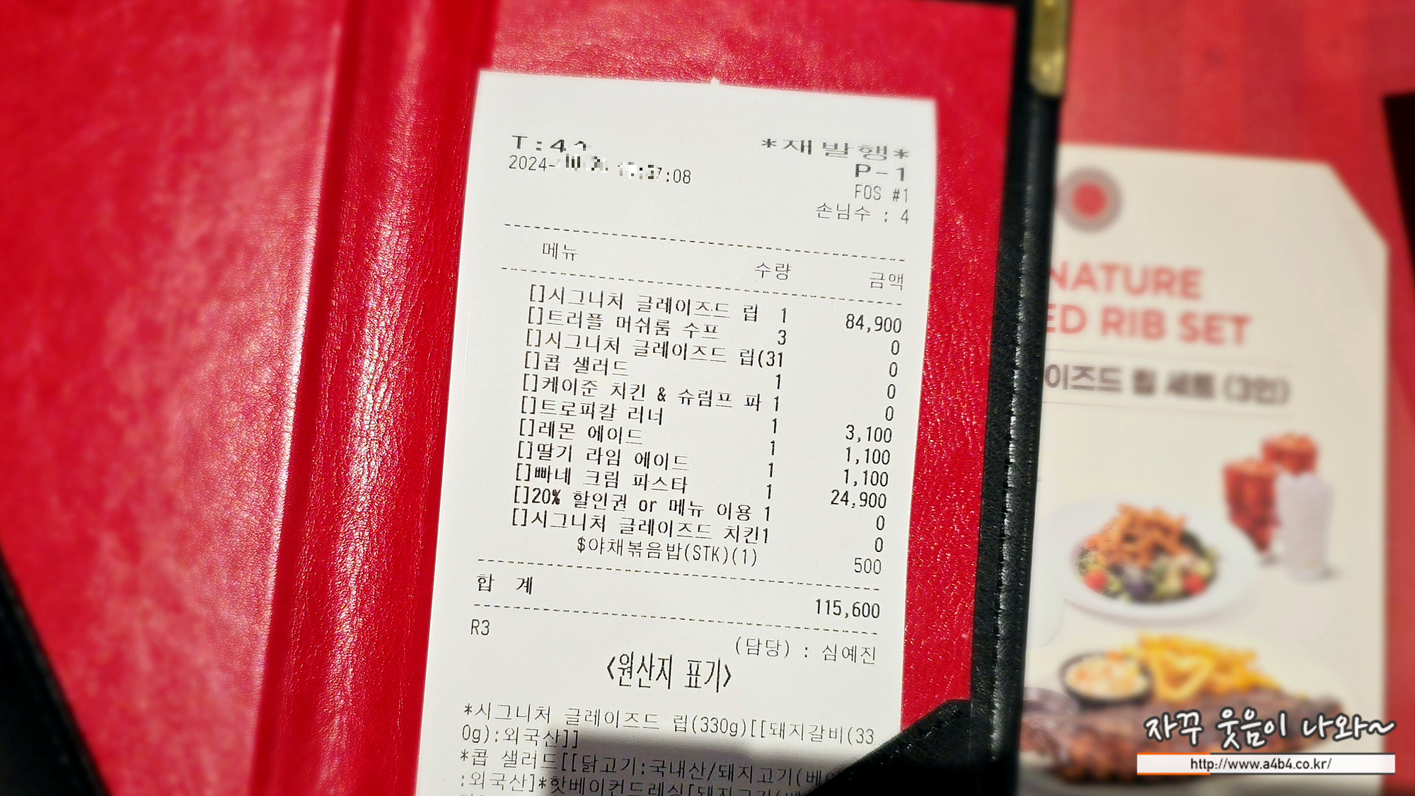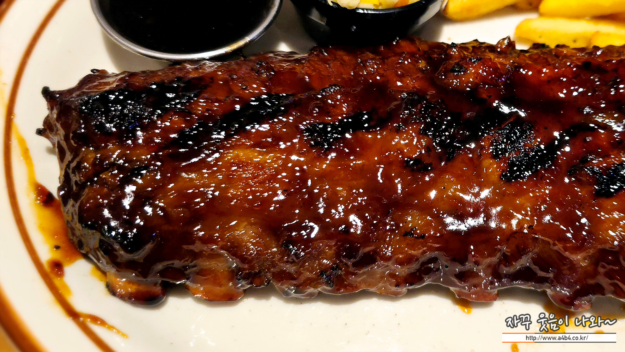 TGIF 시그니처 글레이즈드 립 폭립은 크기는 커 보이지만 고기가 많이 붙어 있지는 않았네요. 다소 아쉬운 부분...