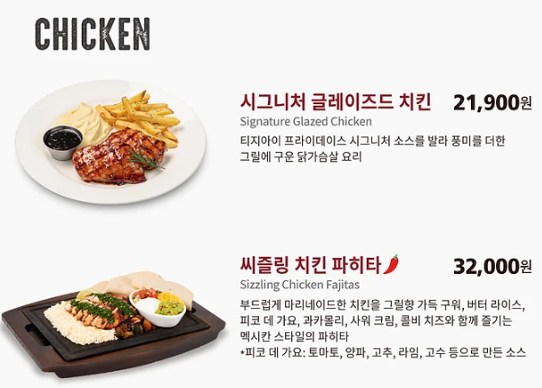 요녀석은 TGIF 맴버 가입하고 웰컴 바우처로 받은 시그니처 글레이즈드 치킨입니다. 세트메뉴와 주류 제외하고 단품 식사로 20,000원 이상 주문해야 가능한 메뉴인데요. 여기에 볶음밥 하나 추가합니다. (+500원)