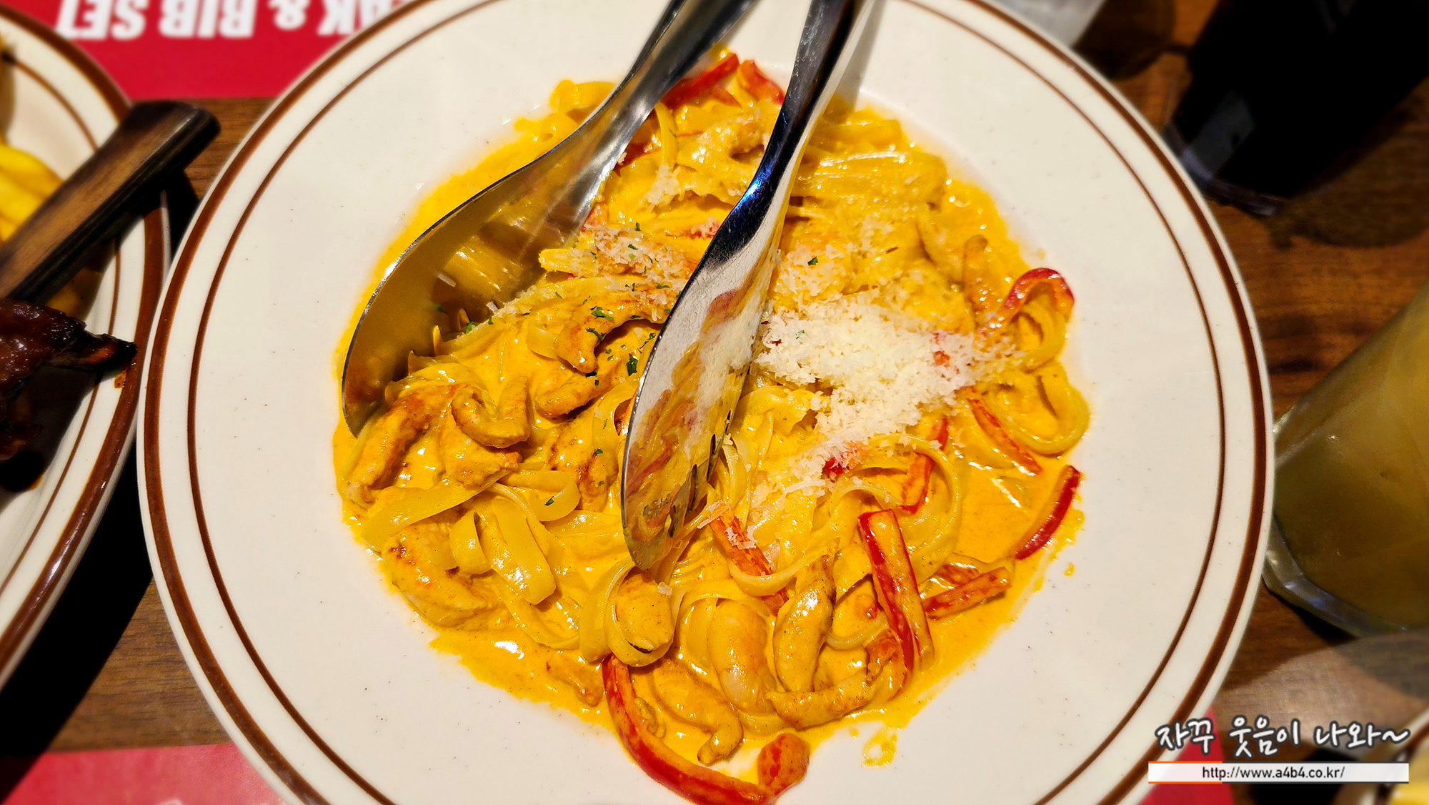 세트메뉴를 먹다 보니 TGIF 할인 또는 추가 프로모션을 받지 못하네요. 약간 억울하기도 하고 4인이 먹기에 부족해서 메뉴 하나 추가합니다. 추가로 김치 아보 필라프를 먹으려고 했다가 가격인 19,000원 대여서 프로모션 조건에 맞지 않아 주문한 메뉴 케이준 치킨 슈림프 파스타 가격은 22,900원. 약간 맵다고 했는데 맵지 않아요.
