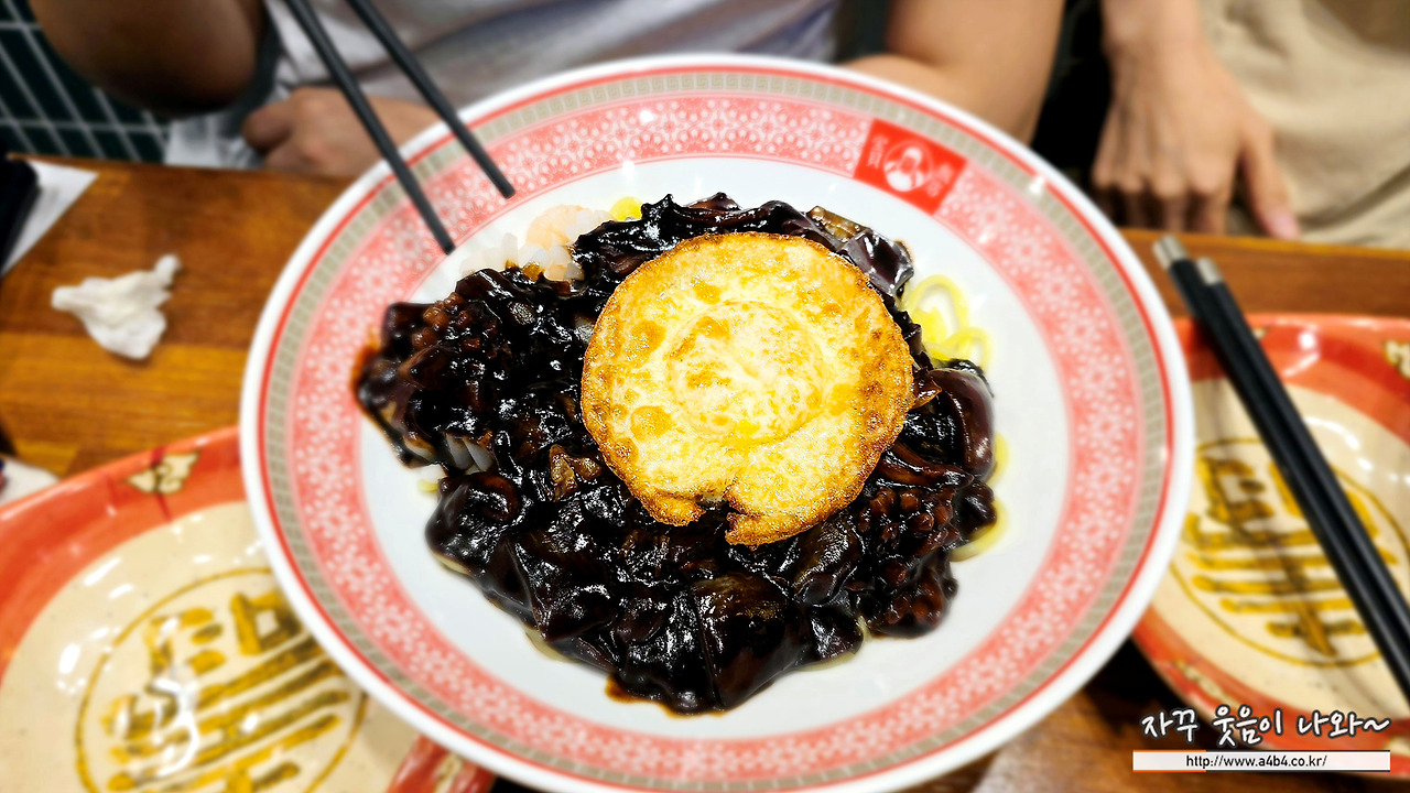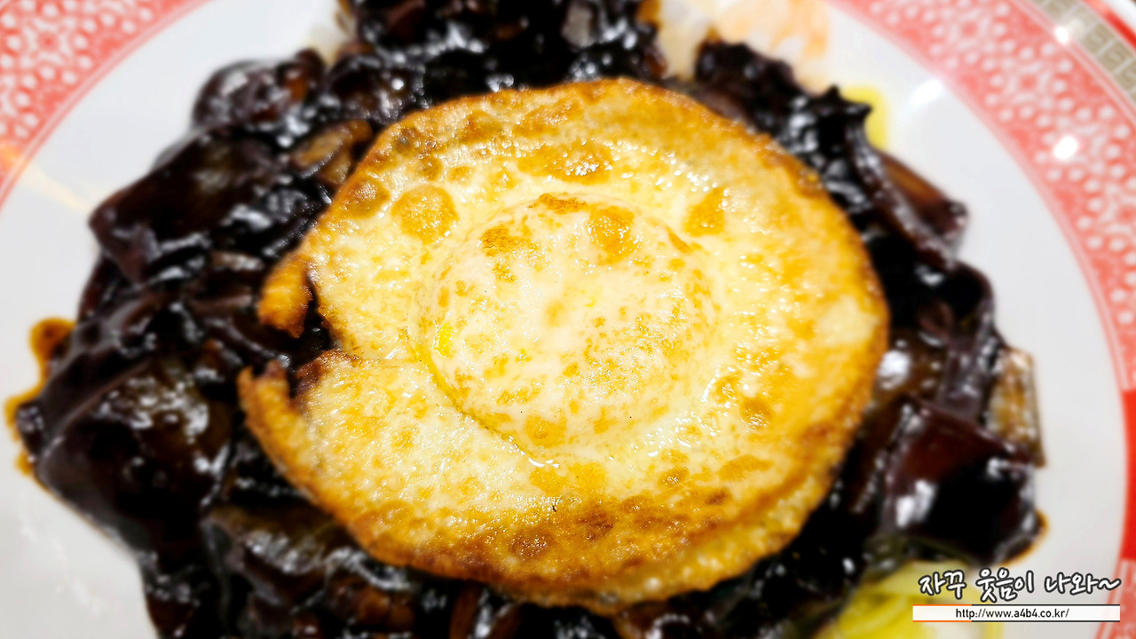 간짜장 위에 계란 프라이 하나 올려있네요.