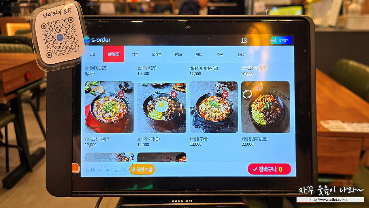 보배반점 메뉴 확인 및 주문은 테이블에 설치된 태블릿을 통해 주문 및 결제가 진행됩니다.