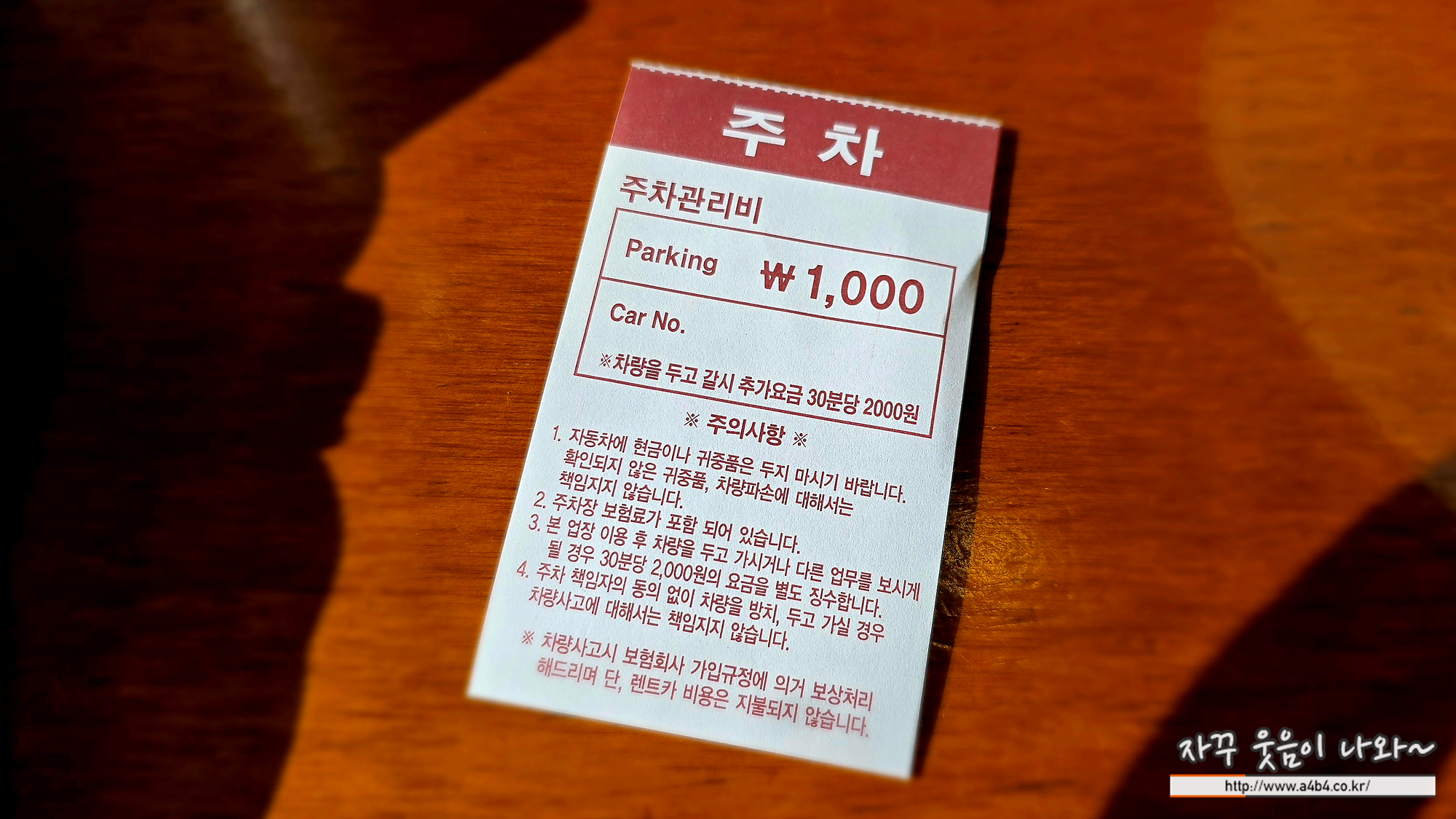 방이동 뽕사부 주차요금은 별도로 없지만, 발렛비용은 1,000원 부과됩니다.