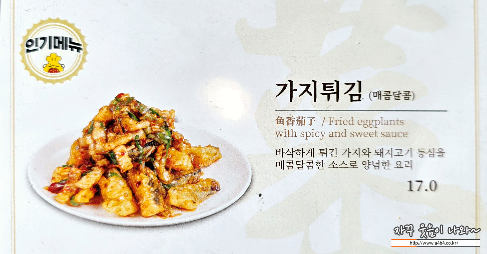 중국집에 가족과 방문하면 탕수육 사이에서 갈등하는 메뉴가 바로 가지요리 인데요.