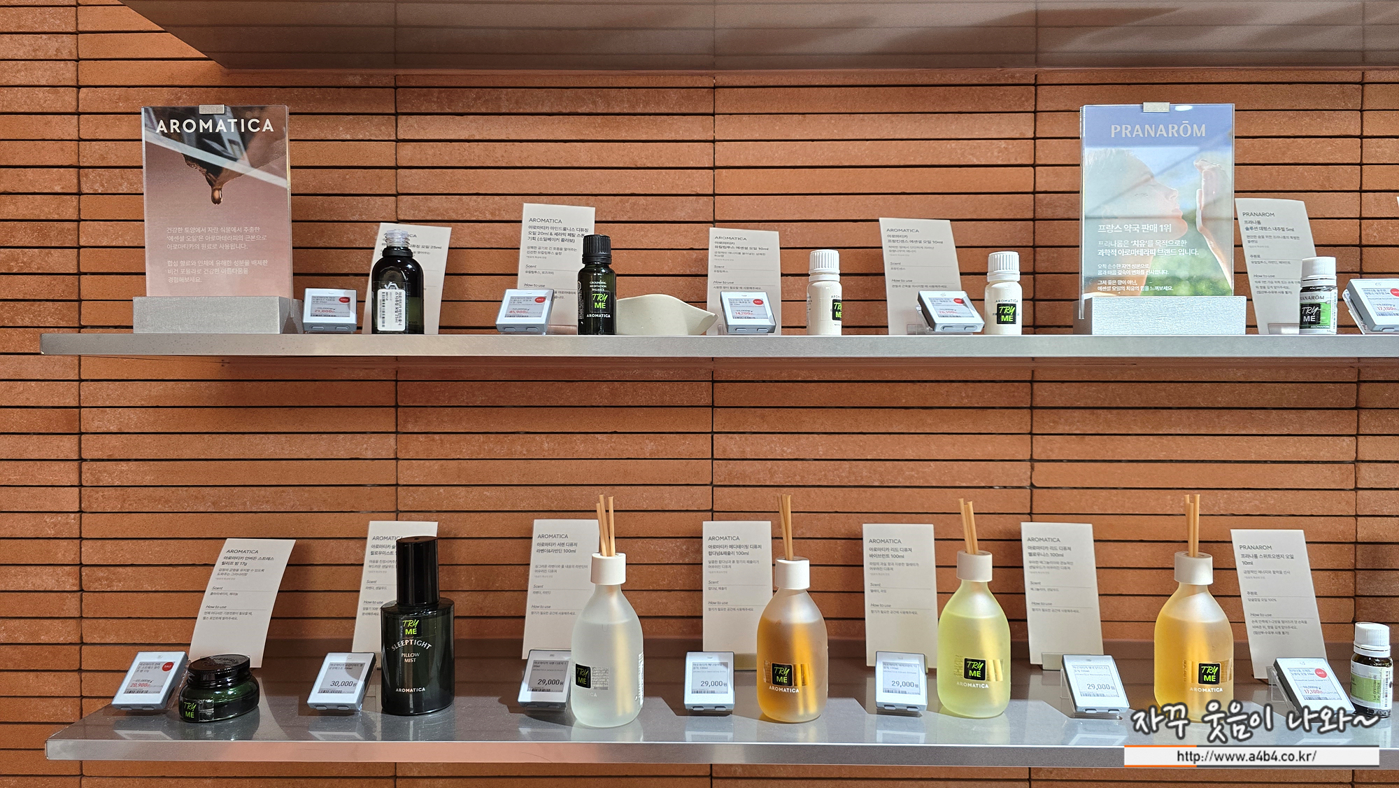 아로마 테라피 체험공간입니다. 저는 이 공간에만 오면 두통이 생겨서 러쉬 매장과 함께 사장 꺼려하는 곳...