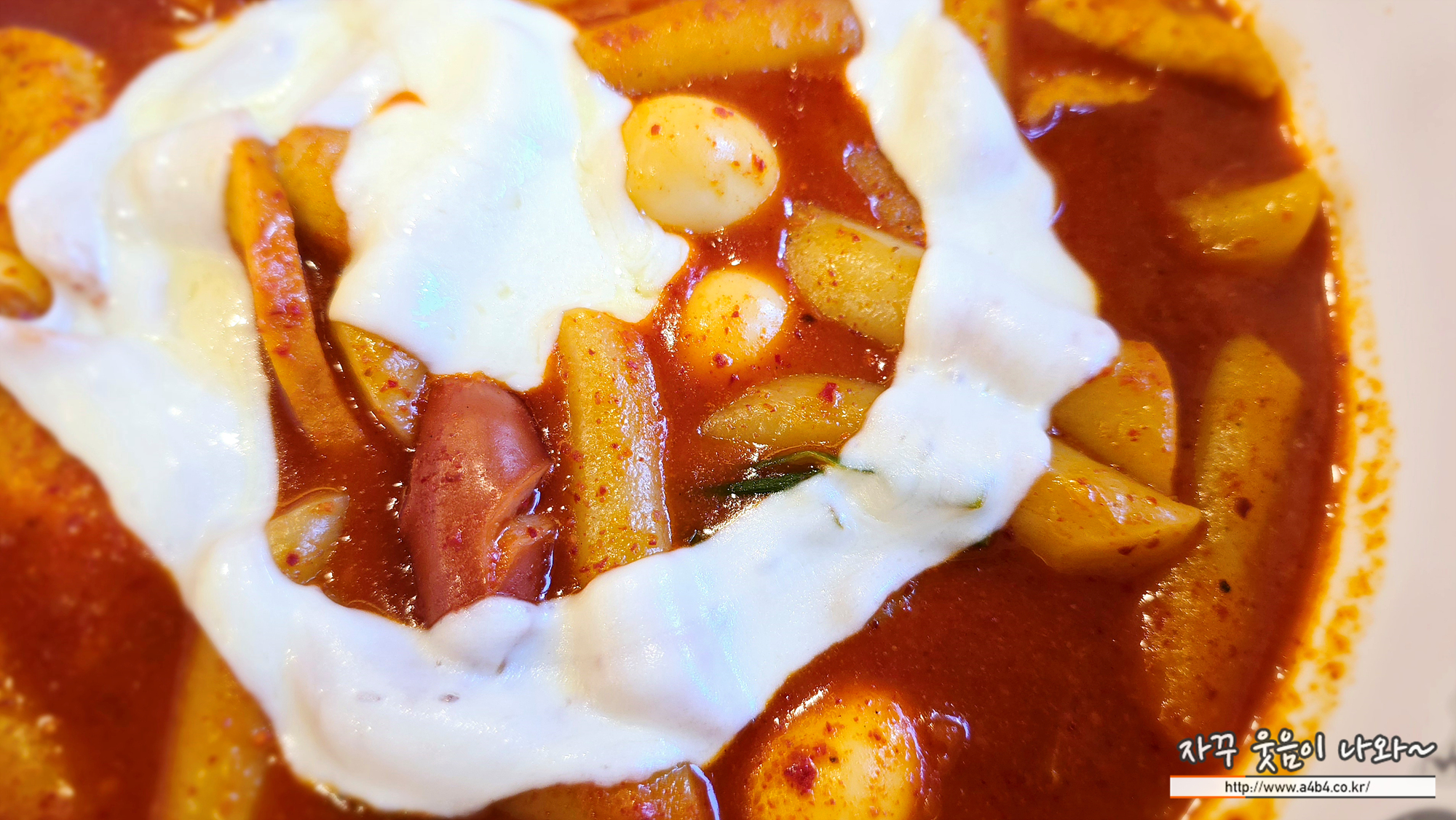 엽떡의 시그니처 같은 떡볶이 위에 올려진 치즈와 함께...