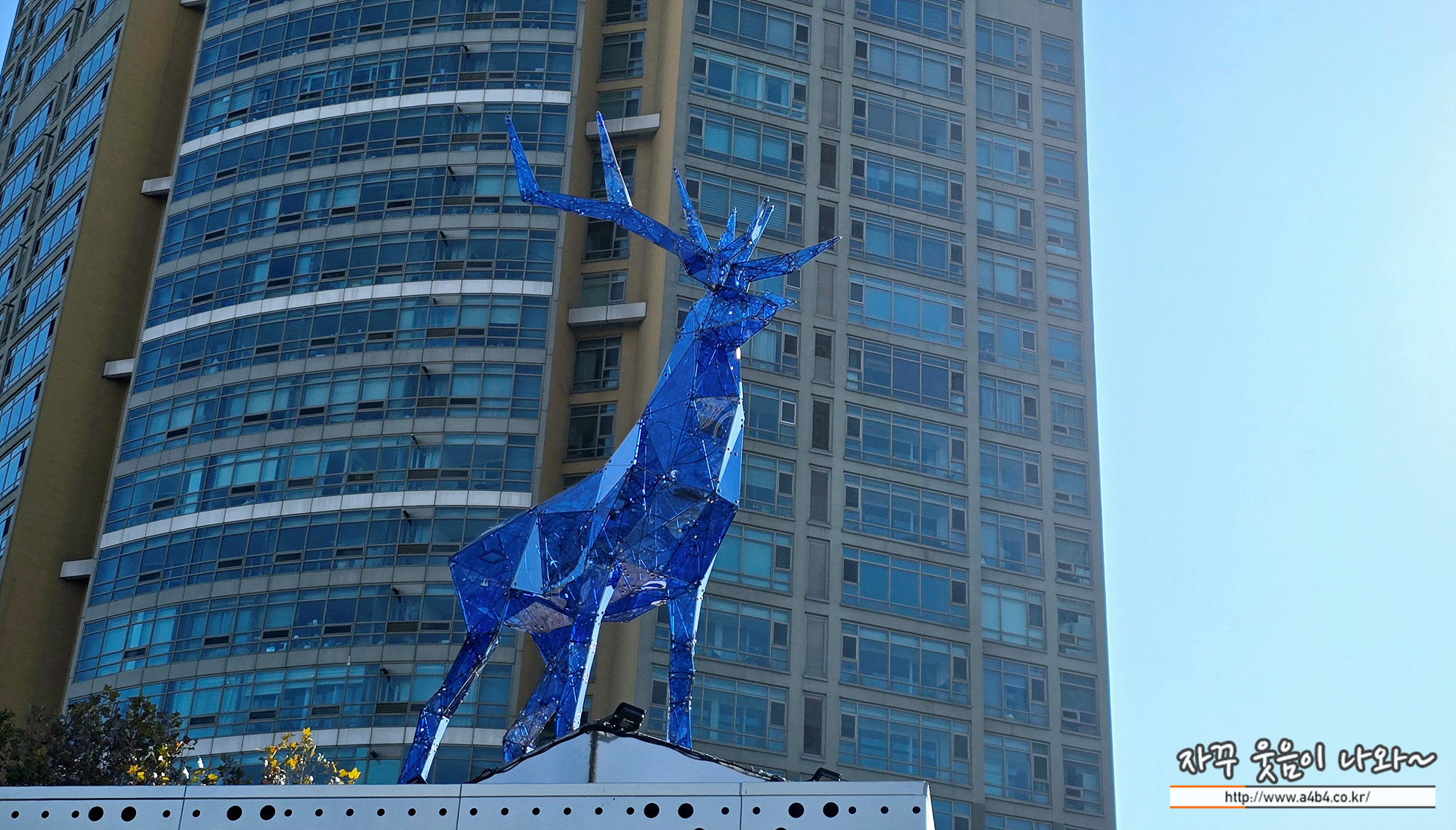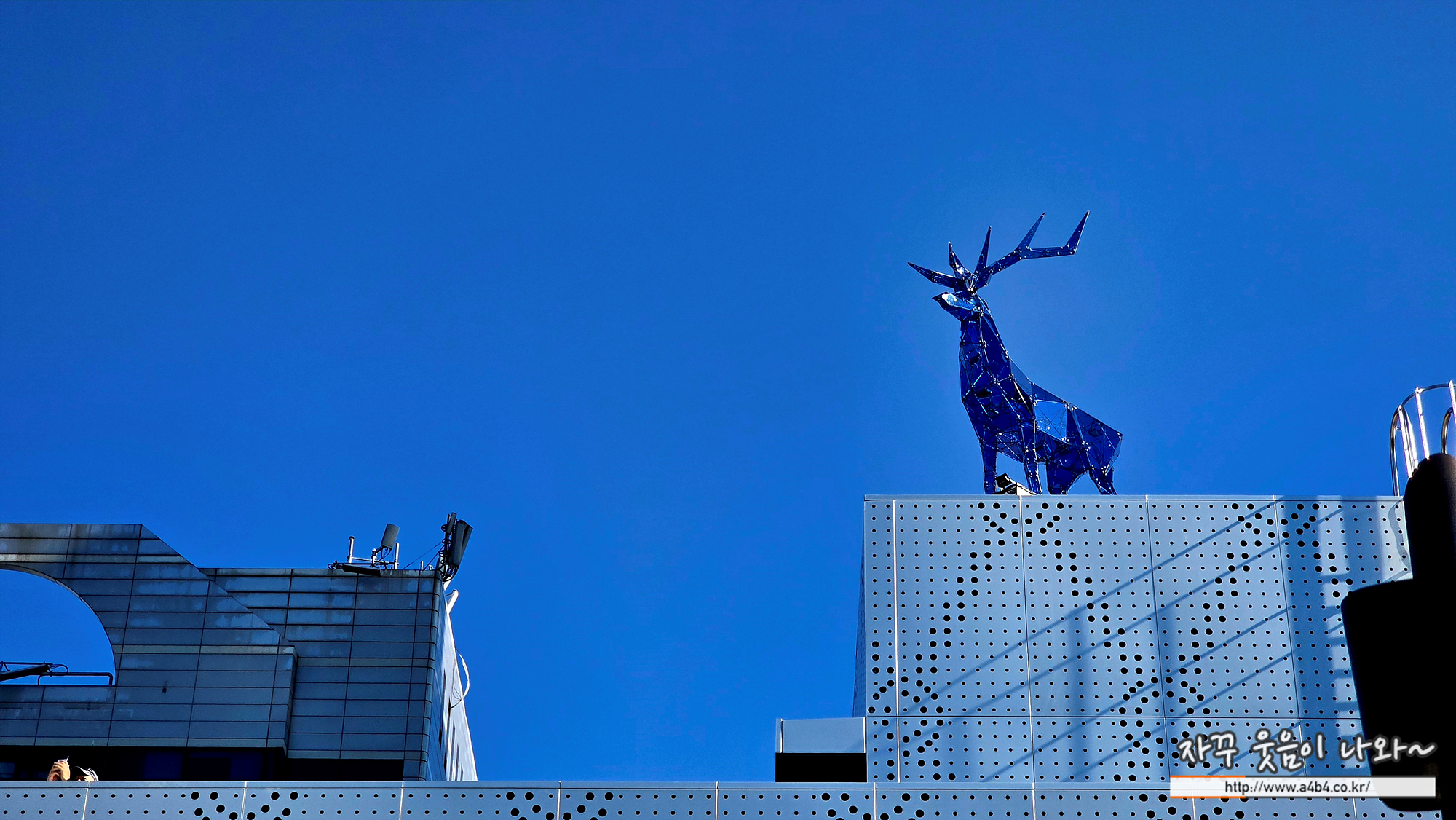 먼저 건물 맨 위에 보이는 푸른색 거대한 사슴 한 마리가 보입니다. 작품 제목은 ' Quadruped (네발짐승)'