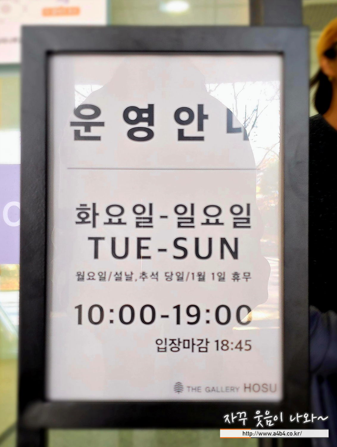 참고로 이번에 잠실 석촌호수 동호에 오픈한 더 갤러리 호수 운영시간은 매월 화요일 부터 일요일까지 오전 10시 부터 저녁 7시까지 운영됩니다. 휴무일은 매주 월요일입니다.