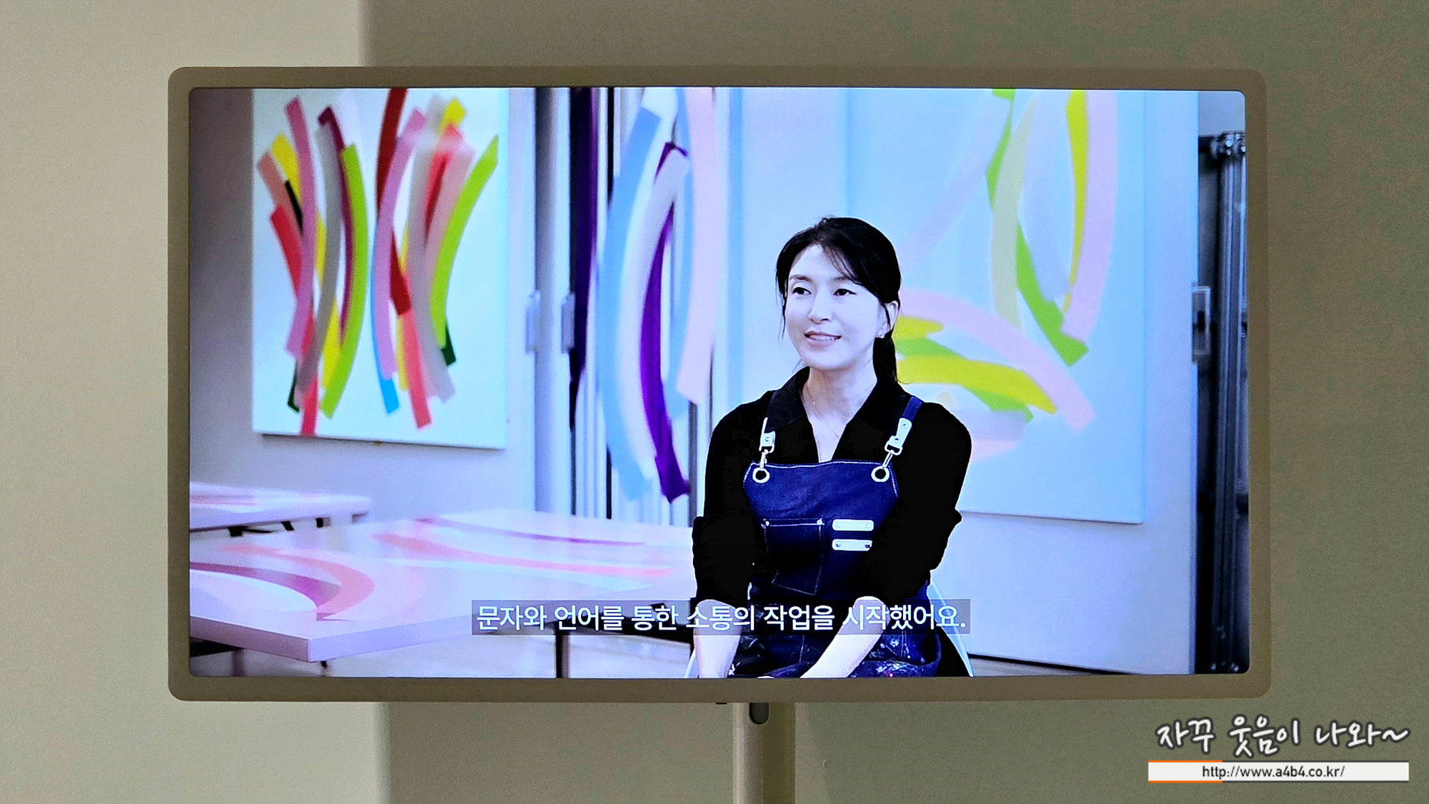 잠실 더 갤러리 호수 개관전 제 2관 작품에는 작가의 인터뷰나 작품 제작과정이 영상으로 소개되고 있습니다. 도슨트 시간에맞춰 방문하지는 못했지만 작품 이해하는데 많은 도움이 되었네요.