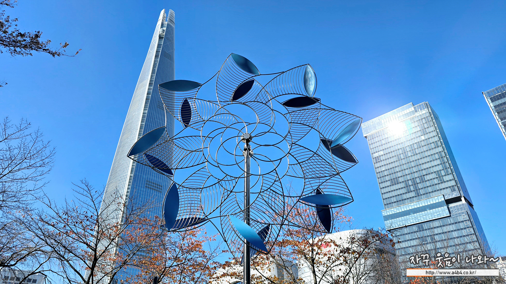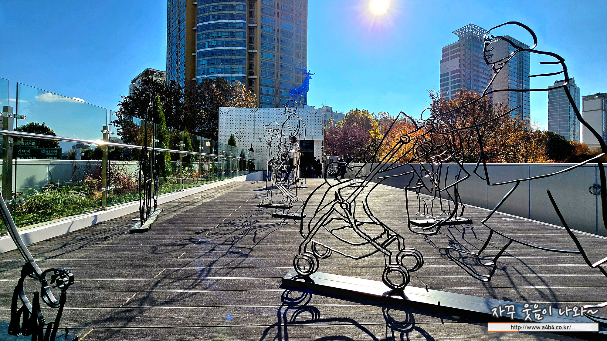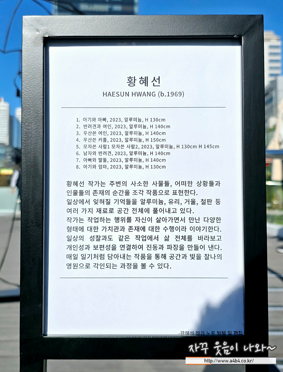 잠실 더 갤러리 호수 옥상정원에 전시되어 있는 작품은요? 황혜선 작가의 작품입니다.