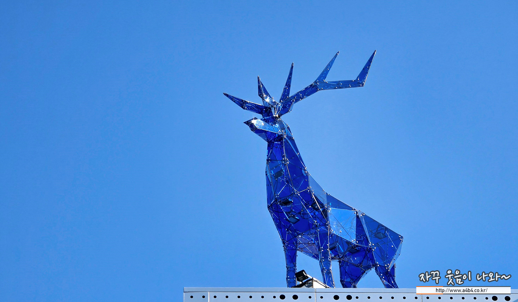 먼저 건물 맨 위에 보이는 푸른색 거대한 사슴 한 마리가 보입니다. 작품 제목은 ' Quadruped (네발짐승)'