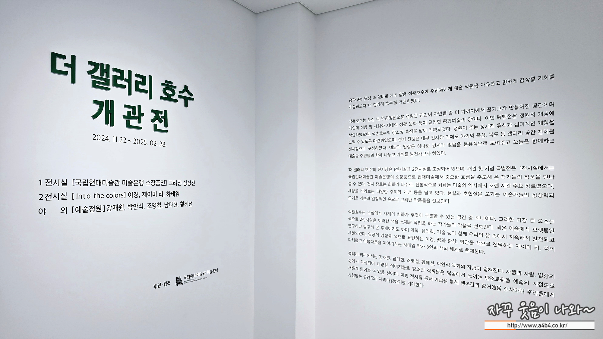 송파구는 도심 속 쉼터로 자리 잡은 석촌호수에 주민들에게 예술 작품을 자유로~: 현하계 감상할 기회를 제공하고자 '더 갤러리 호수'를 개관하였다.