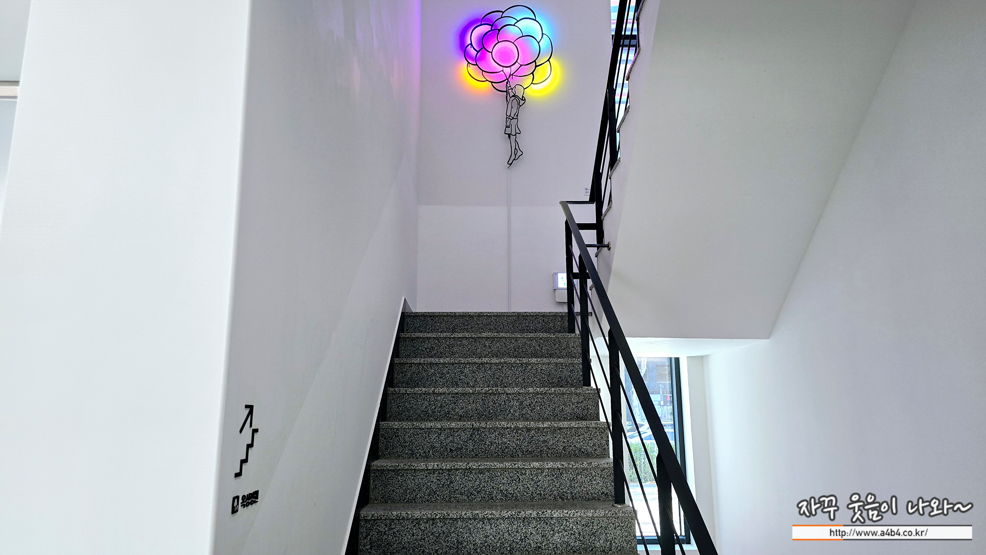 잠실 더 갤러리 호수 각 층을 계단을 통해 올라가다 보면 황혜선 작가의 LED 작품들을 만나볼 수 있습니다. 작가에 작품은 옥상정원에도 설치되어 있는데요. 작가 소개는 뒤에서 설명합니다.