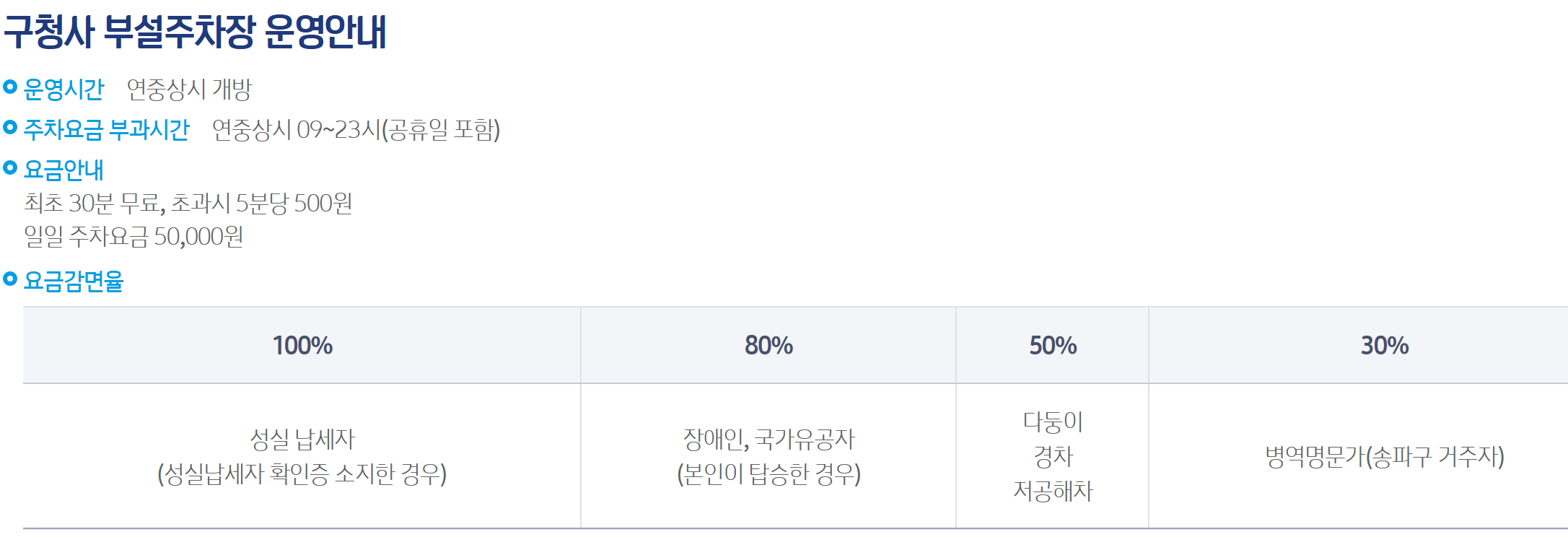 | 송파구청 공영주차장 주차요금 및 할인 : 30분 무료