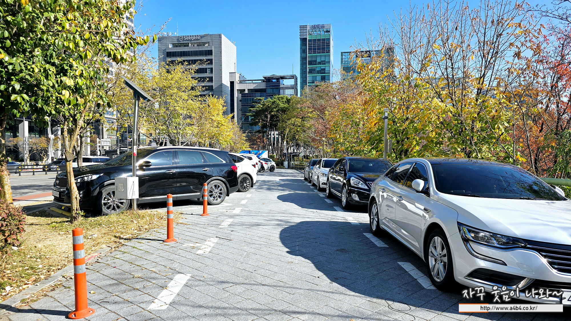 주차장 도로폭이 좁아서 주차나 이동이 쉬운 구조는 아니고요. 제가 주차한 날에도 차 한대가 앞으로 바짝 이동하지 않고 주차해서 다른 차들이 힘들게 이동하는 상황이었네요. (주말이어서 관리원도 없고)