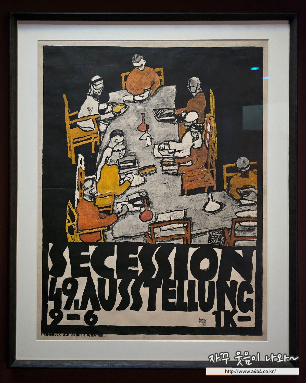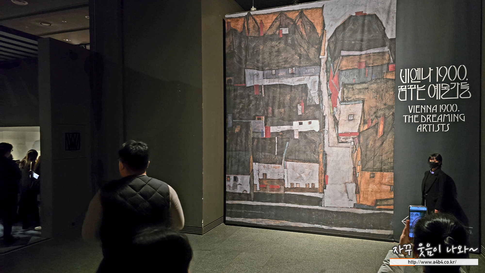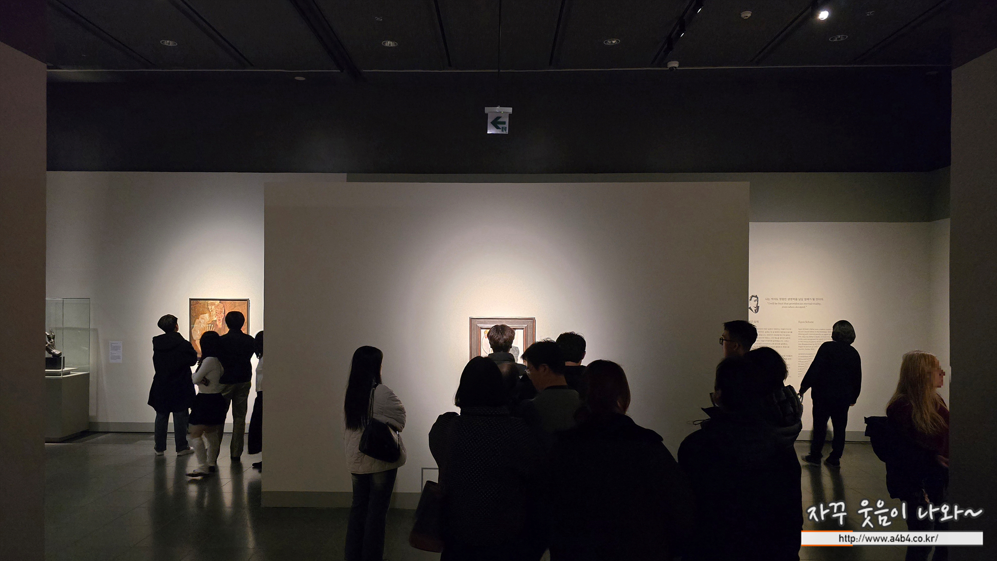전시장 안에는 1실과 2실 사이 에곤실레의 작품현수막을 배경으로 많은 분들이 기념사진 남기시네요.