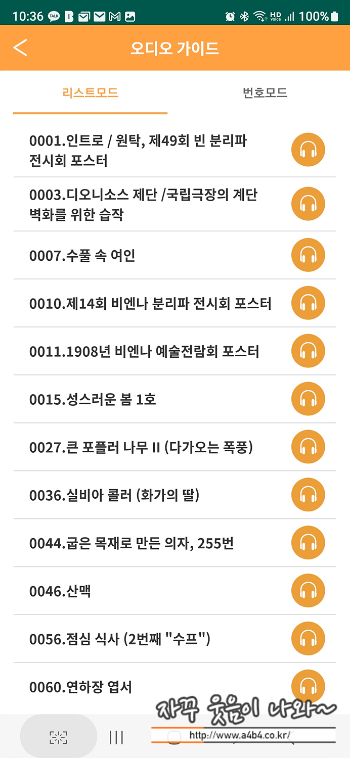 이번 비엔나 1900 꿈꾸는 예술가들 전시회 오디오 가이드는 가이드온 앱을 통해 3,000원에 제공되는데요. 스트리밍 방식이 아닌 다운로드 방식으로 제공됩니다. 오디오가이드 파일 용량이 30Mb, 가이드온 앱이 없다면 추가 설치가 필요하니 현장에서 하기에는 다소 불편한 부분이 있습니다.