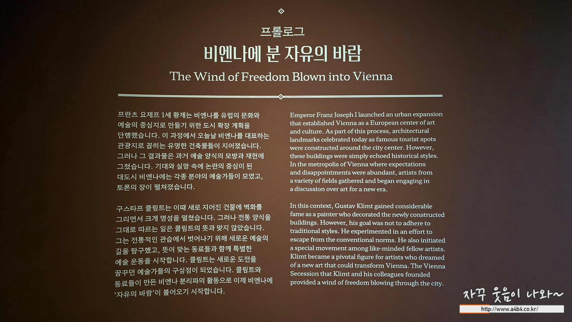 이번 비엔나 1900 꿈꾸는 예술가들 전시회 포토존 소개입니다. 전시장 좋아하는 작품 앞에서 사진 한 장 남기는 것이 가장 좋겠지만 관람객도 많고 대표작은 줄 서 관람하는 상황이어서 어렵습니다.