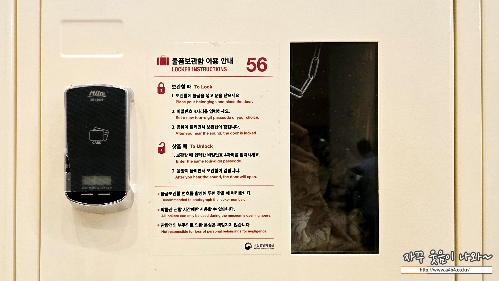 이번 전시회가 열리고 있는 국립중앙박물관 특별전시실 1에는 물품보관함이 무료로 운영되고 있습니다. 전시장 반입금지 물품이나, 큰 가방, 두꺼운 옷등은 무료 물품보관함 이용하시면 됩니다.