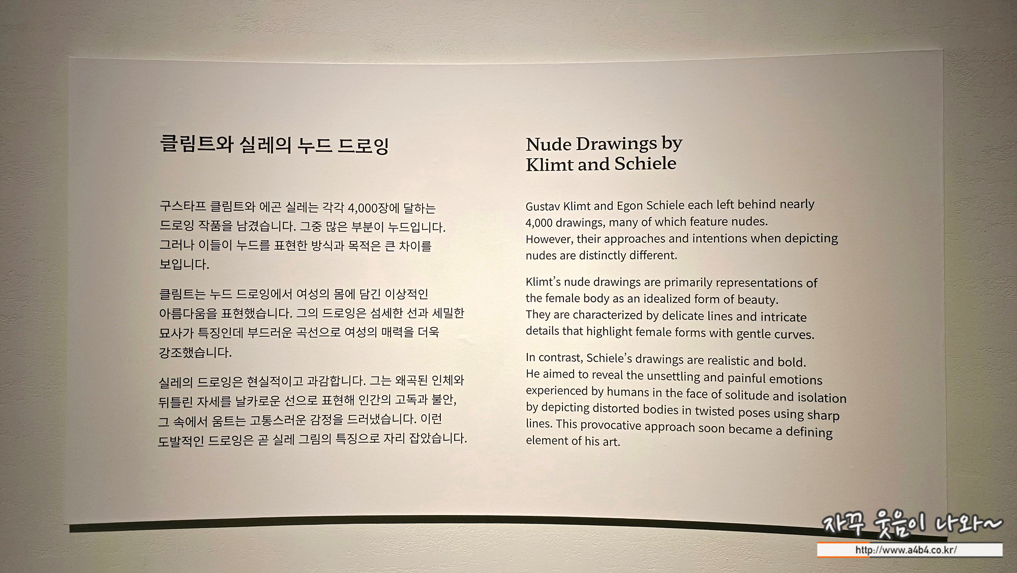 클림트의 누드 스케치를 감상했다면, 반대편 공간은 에곤 실레의 작품을 감상할 수 있다. 같은 듯 전혀 다른...
