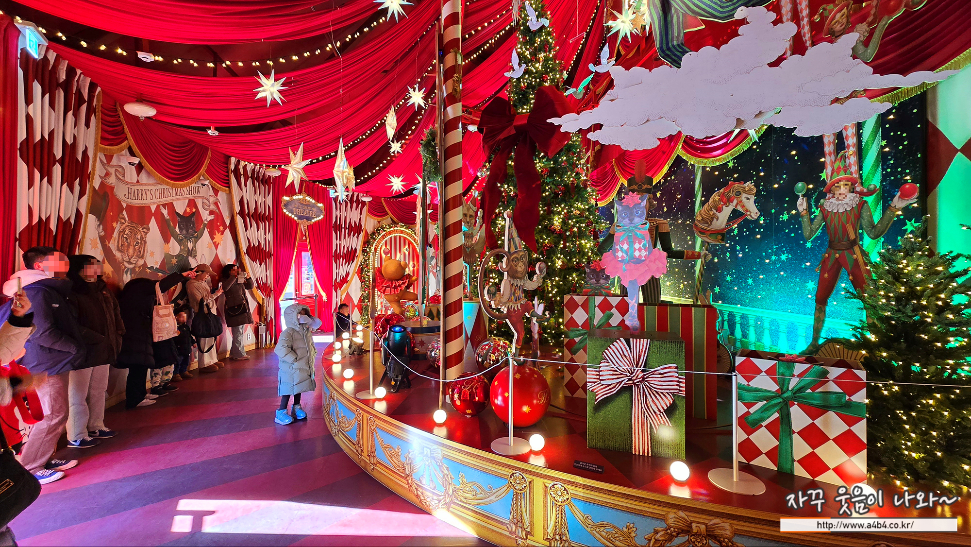 크리스마스 빌리지는 형형색색의 텐트와 화려한 벨벳커튼, 다양한 캐릭터들이 펼치는 화려한 쇼를 만나볼 수 있습니다. 실제 사람이나 동물이 출연하는 것는 아니지만 우리나라에서는 보기 힘든 이국적인 캐럭터들의 (화려한?) 쇼를 만나볼 수 있습니다.