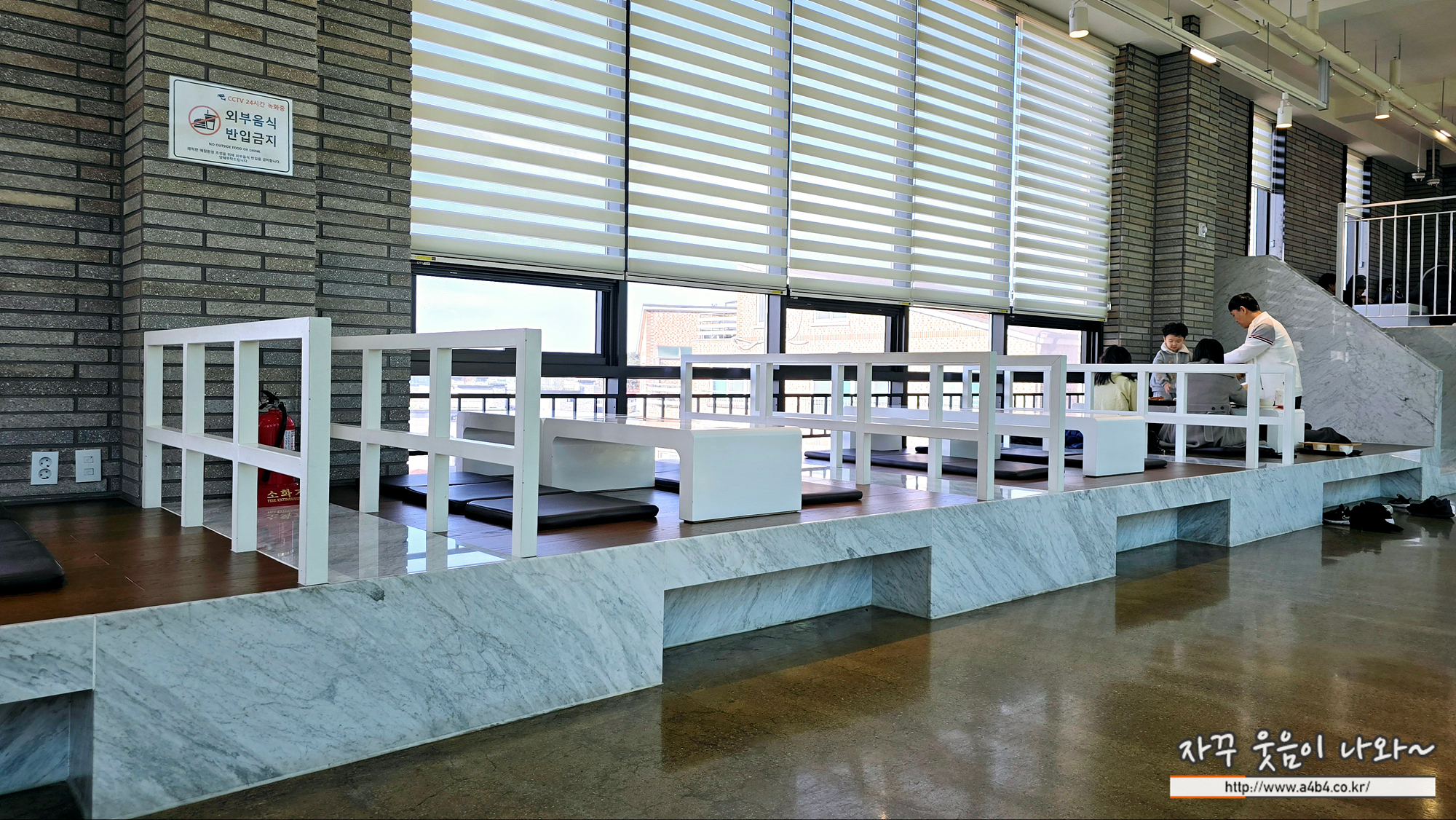 특히 아래 사진과 같은 좌식테이블이 곳곳에 세팅되어 있어 아이들과 함께하기 좋아 보이네요. 실제로도 유모차 가지고 해당 공간에서 아이와 함께 식사하거나 음료마시는 가족들이 많네요.