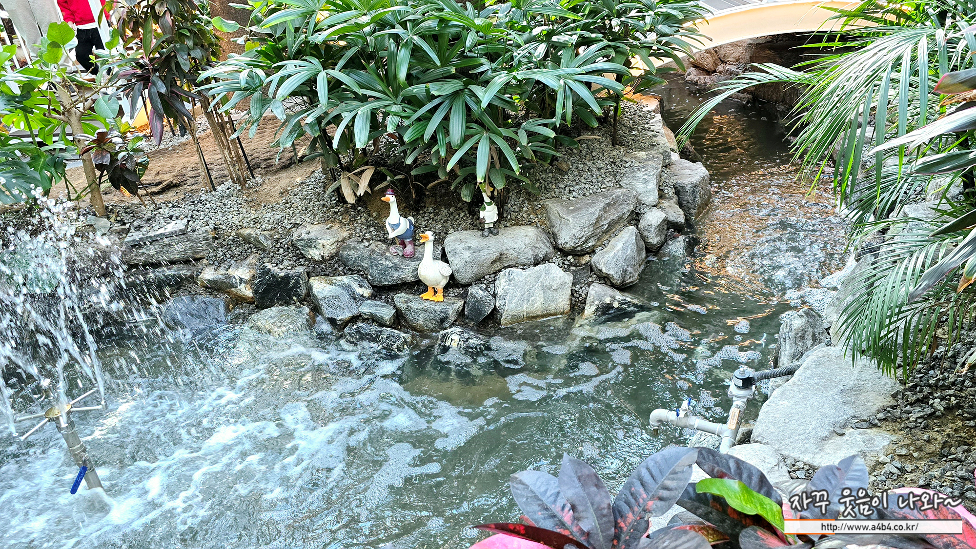 인천 송도 초대형 베이커리 카페 포레스트 아웃팅스 1층에는 구름다리와 작은 분수, 연못 등이 세팅되어 있습니다. 도심에서 거대한 온실안에 열대 나무와 식물을 보면서 여유를 가질 수 있고 곳곳에 이쁜 포토존도 마련되어 있습니다.
