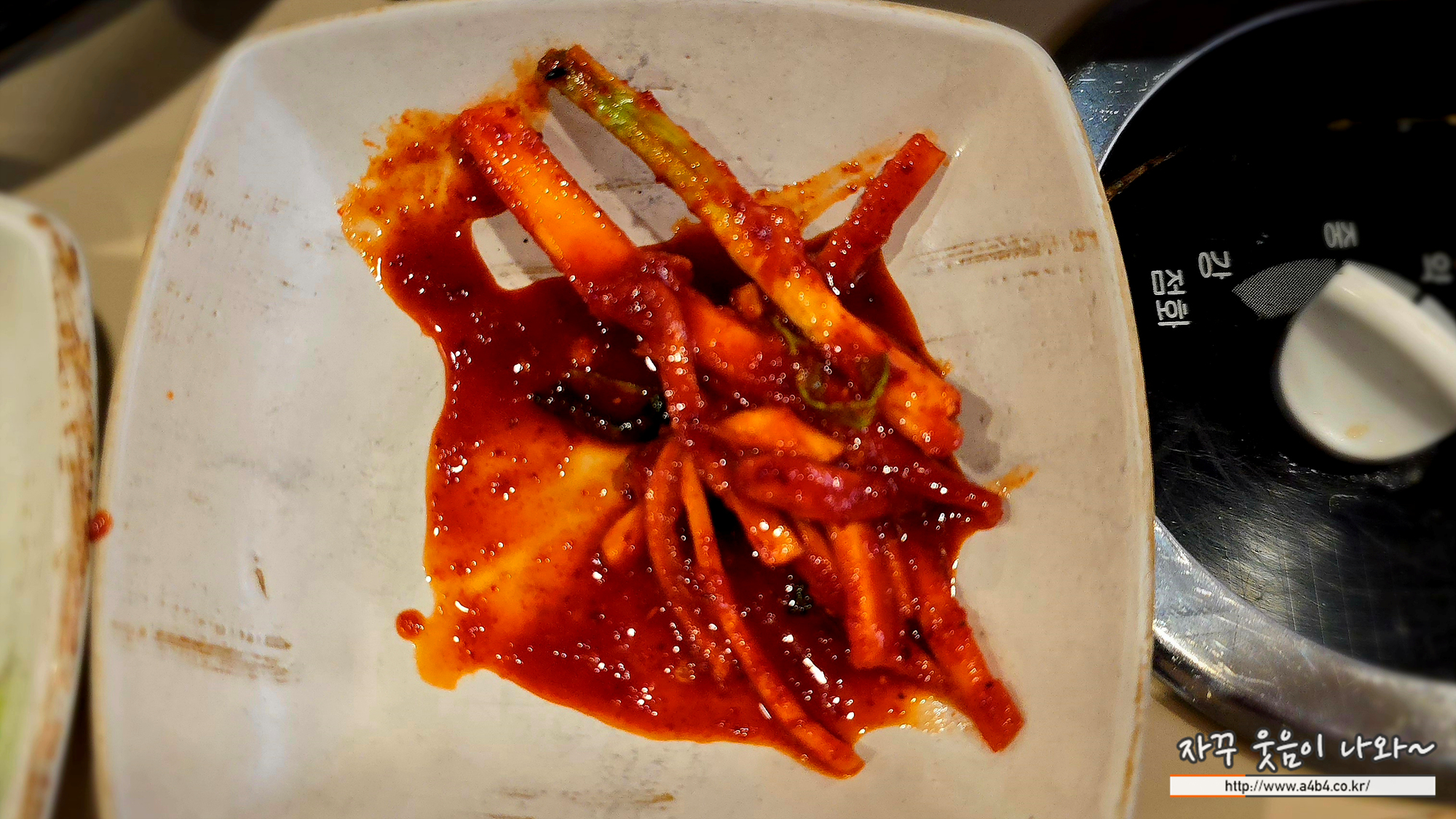 삼우정 메뉴판에도 있듯 여러 불고기 메뉴중에서도 버섯불고기 이름 앞에는 매울신 (辛) 자가 써 있는데요. 저희는 다대기를 1/3 정도 덜어내고 조리해서 먹었습니다. 그래도 다소 매운맛이 느껴지네요. 아주 매콤한 불고기 전골을 기대하지 않으신다면, 매운 양념은 조절하면서 조리 하세요.