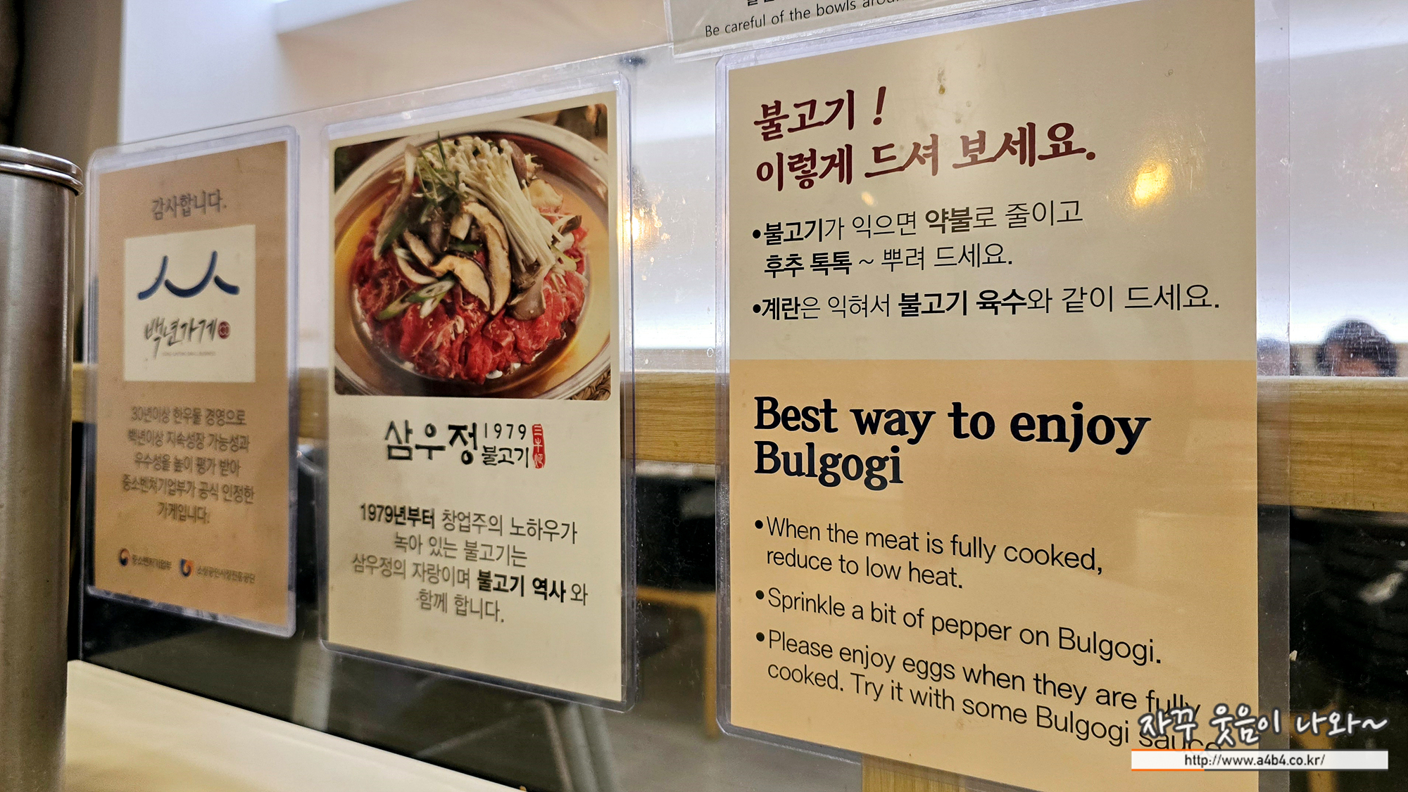 잠실 롯데백화점 11층 식당가 불고기 맛집인 삼우정 가족식사 후기입니다.
