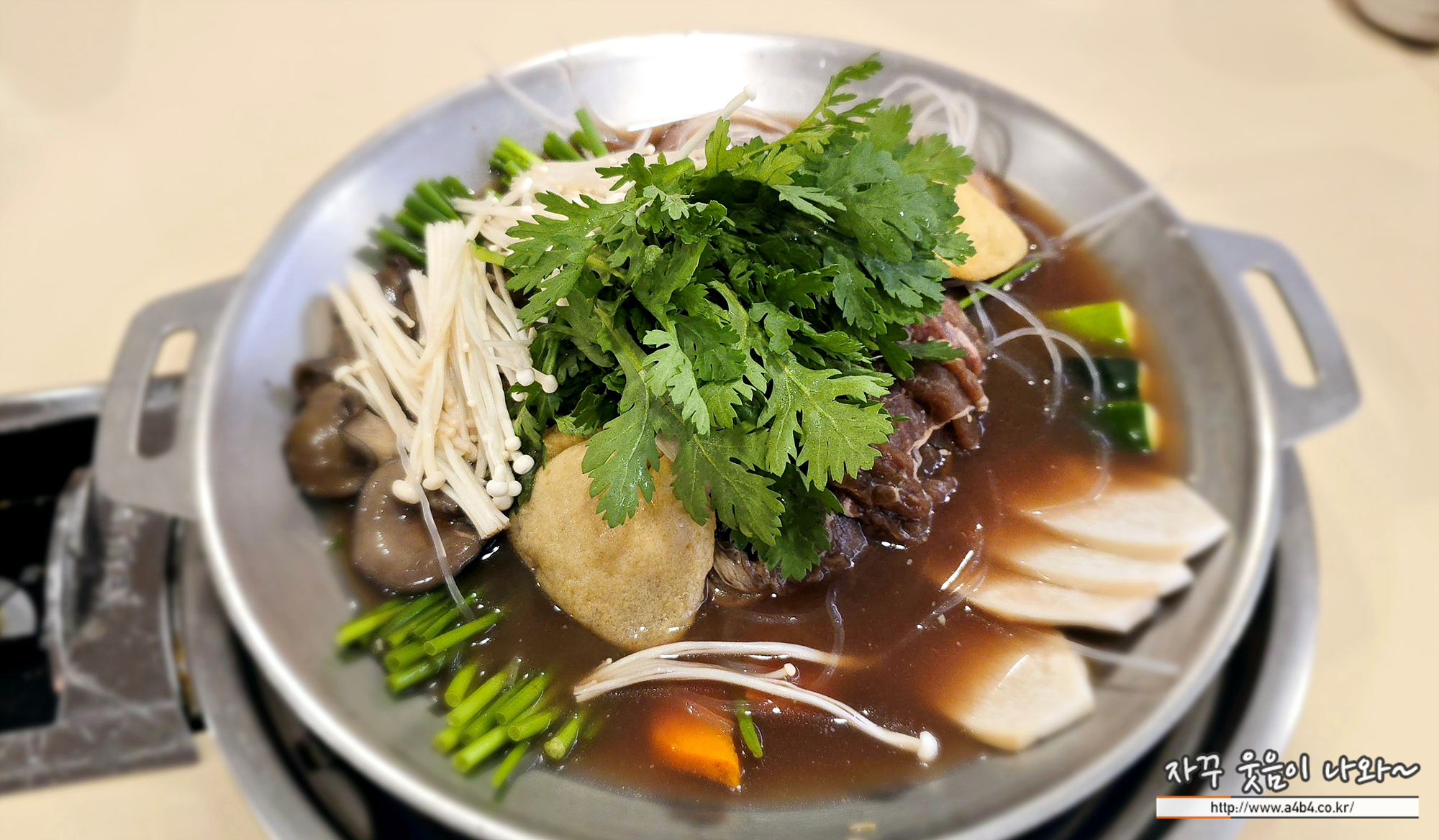 삼우정 불고기전골 특징은 기존 달달한 맛의 간장 불고기가 아닌 매운맛을 보여주는 독특하면서 깔끔한 불고기전골 입니다. 전골이라는 이름에 어울리게 불고기와 유부주머니, 호박, 당근, 쑥갓 등의 야채와 함께 버섯이 들어가 있습니다.