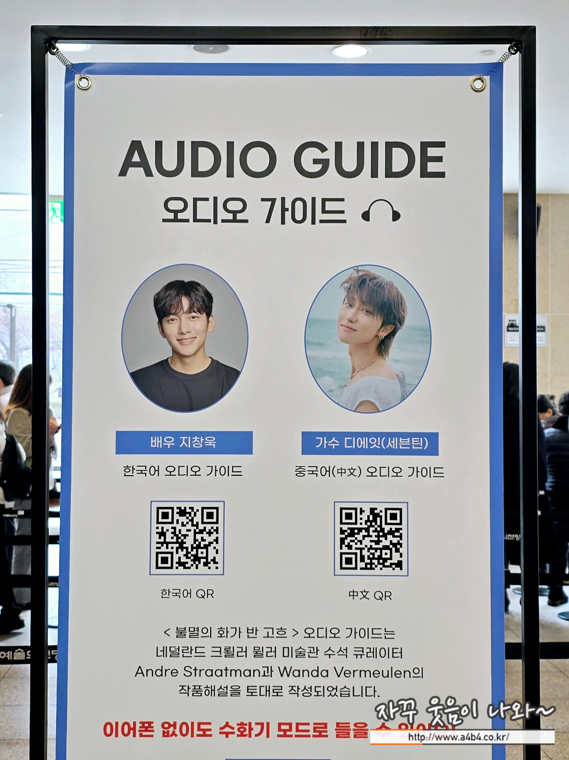 오디오 가이드는 큐피커 앱을 통해 3,000원 유료로 이용이 가능합니다만, 작품 15개 정도 설명이 들어 있네요. 이번 불멸의 화가 반 고흐 오디오가이드도 다른 전시회 오디오 가이드에 비해 부실하다는 생각입니다.