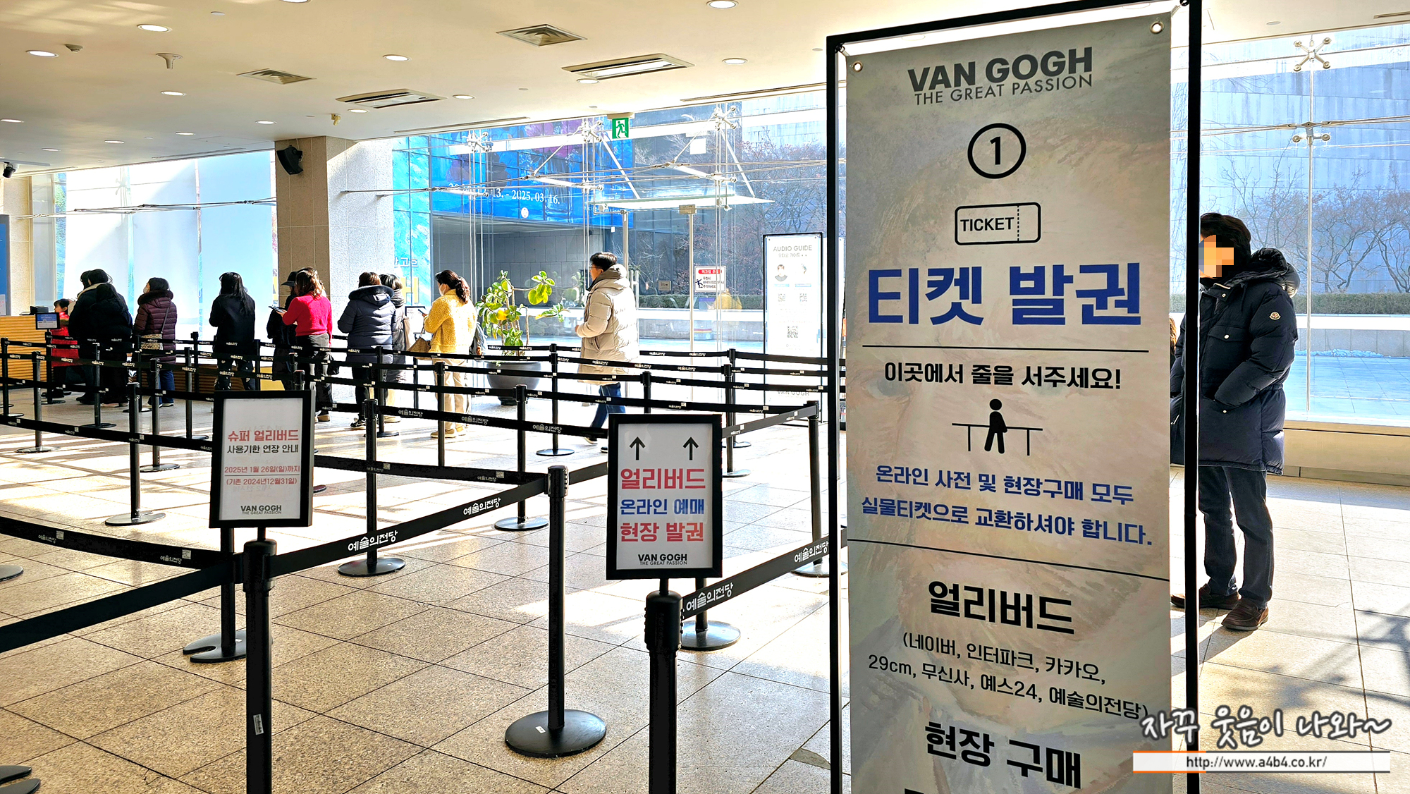 별도의 지류 초대권이 없다면, 현장구매나 예약모두 이번 빈센트 반 고흐 전시회가 열리고 있는 한가람미술관 1층에서 티켓구매 또는 발권하셔야 합니다. 티켓 발권 대기에는 약 10분정도 걸렸습니다.