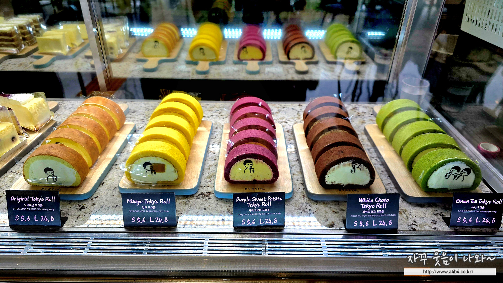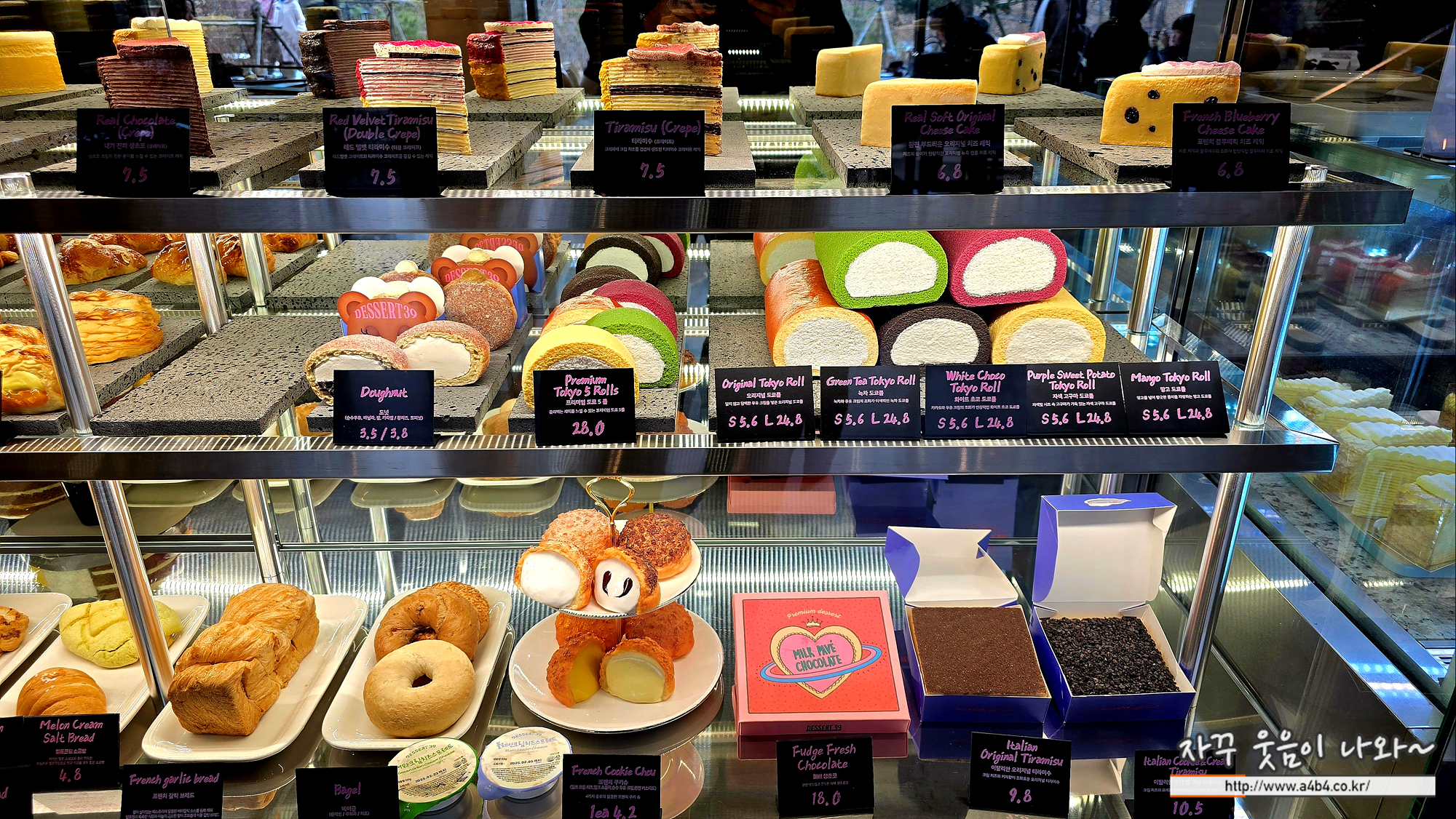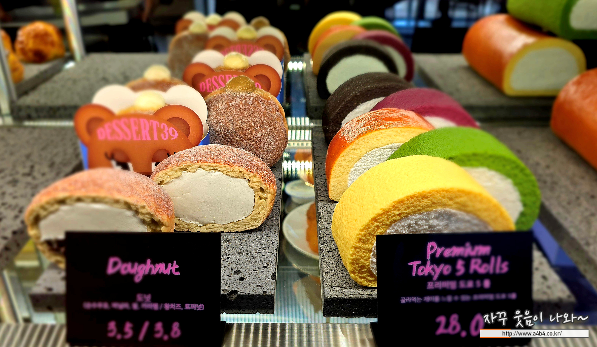 이곳 디저트39 메뉴에는 망고, 자색고구마, 화이트초코, 녹차, 오리지널, 프리미엄 도쿄롤을 만나볼 수 있습니다.