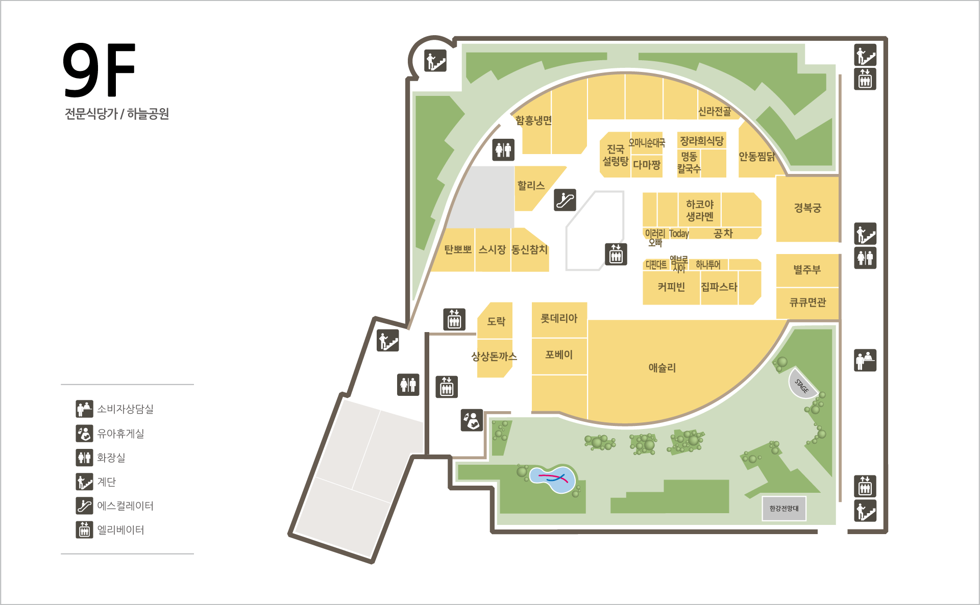 강변 태크노마트 하늘공원은 9층 전문식당가와 같은 곳에 위치해 있습니다.