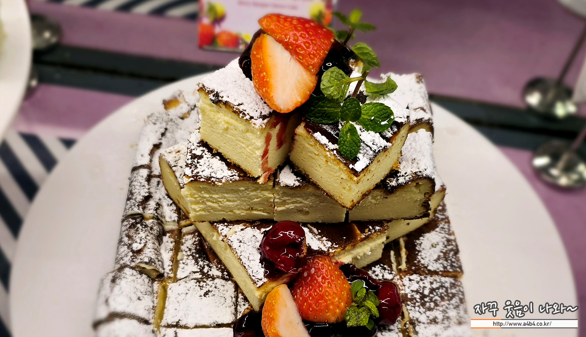 카스테라 위에 딸기크림, 그리고 그 위에 수북하게 올라간 딸기조각이 특징인 메뉴입니다. 아메리카노 커피와 함께 먹기에 딱 좋은... 이름이 재미있기도 합니다.