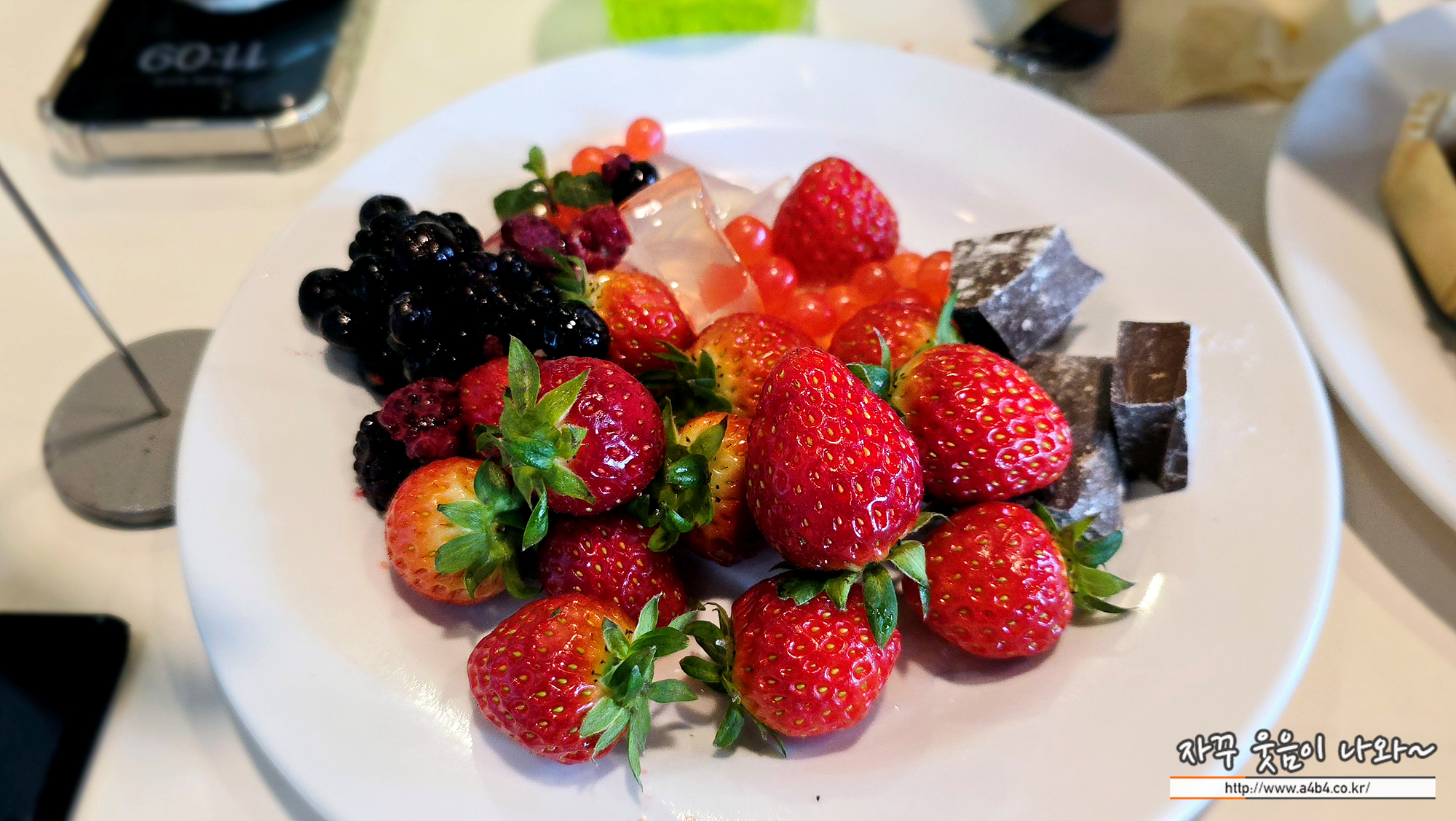 이렇게 생딸기와 초콜릿, 블루베리 등과 함께 맛보면 생과일의 상큼함과 다크초콜릿과의 묘한조화를 느끼실 수 있습니다.