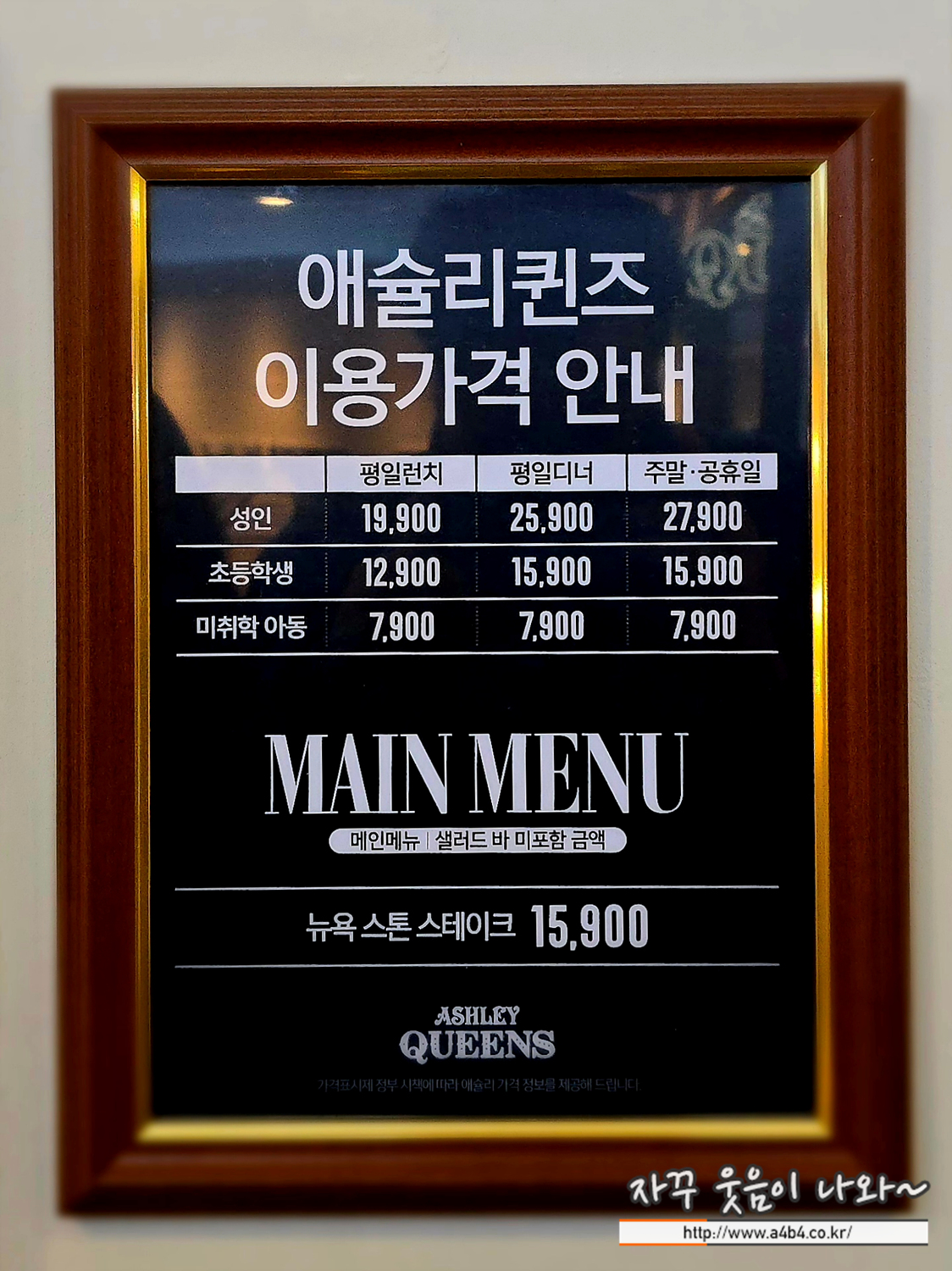 에슐리 퀸즈 중앙에 준비되어 있는 메뉴입니다.