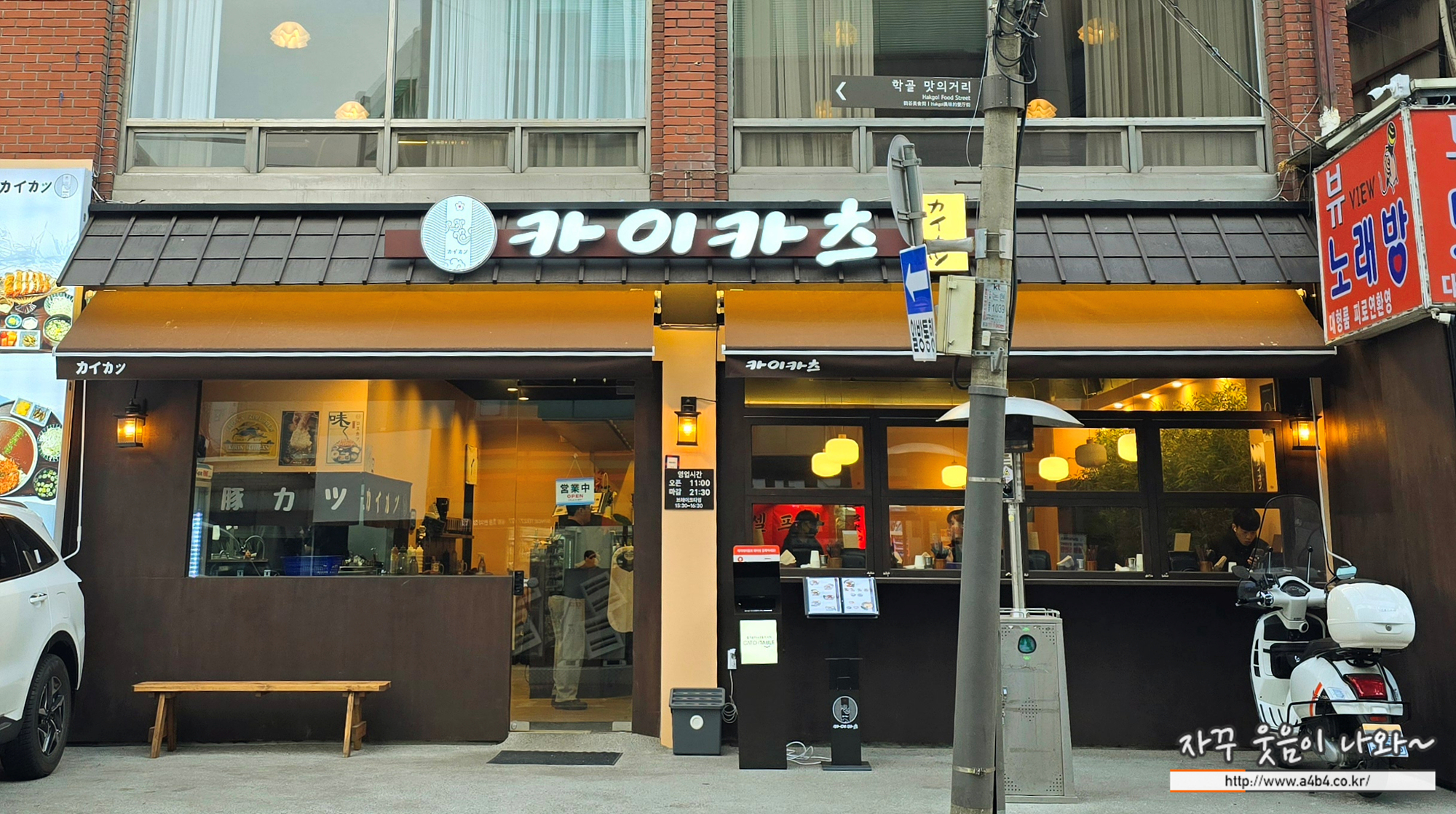 카이카츠 주차장은 매장 앞과 옆에 주차가 가능하며, 별도의 발렛주차나 주차요금은 없습니다.