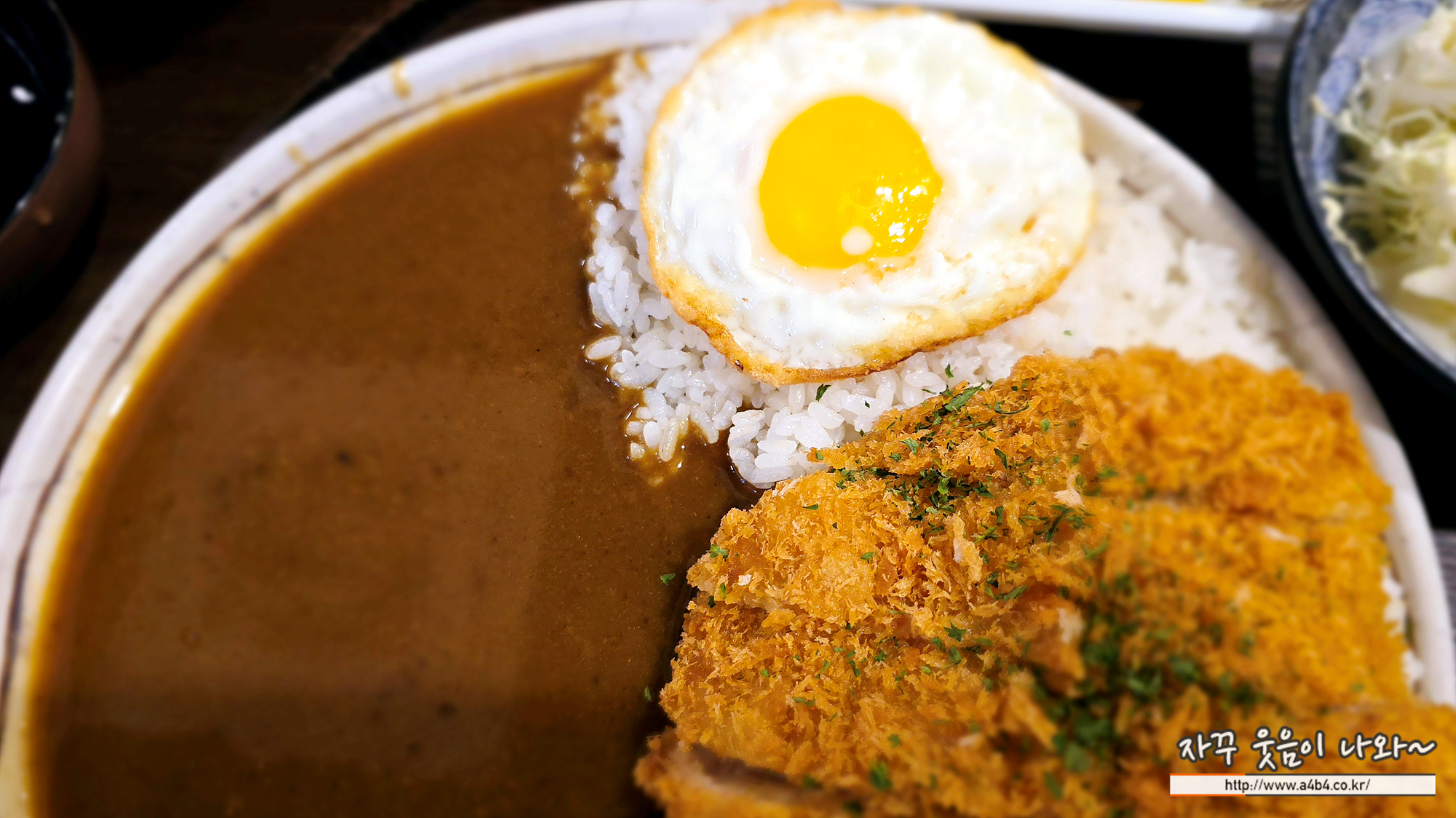 접시가 엄청나게 크고요. 돈까스 크기도 상당합니다. 카레는 수영해도 될 정도로 많이 나오네요.