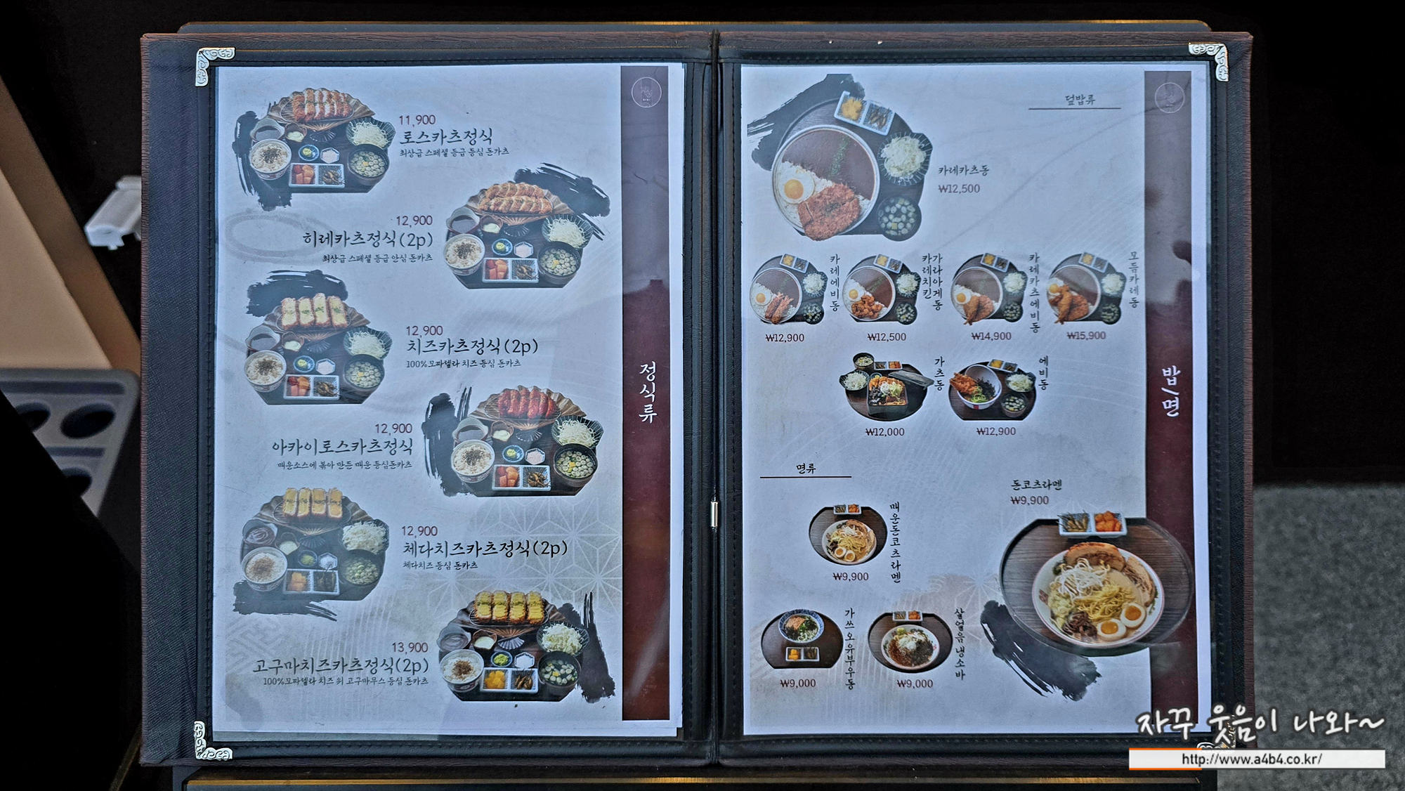 먼저 이곳은 학동역 돈까스와 라멘 맛집입니다. 돈까스로는 로츠카츠, 아카이 로스카츠, 히레카츠, 치즈카츠, 카레 등 이 준비되어 있으며 가격은 1만원 초반의 합리적인 가격을 보입니다.