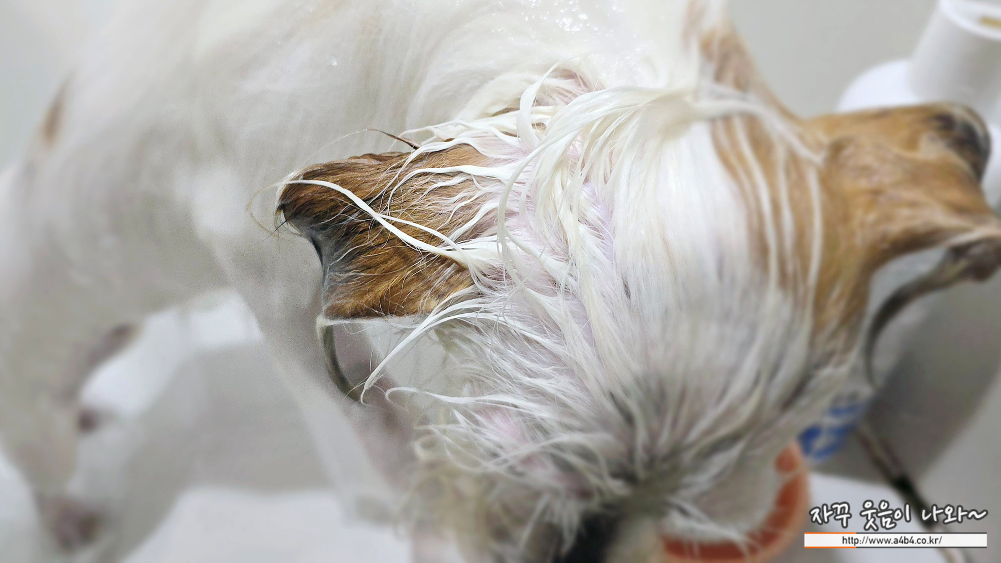 미지근한 물로 몸을 것시고 샴푸를 덜어 거품내고 다시 행굽니다. 제가 강아지가 아니니 샴푸가 자극적인지 설탕이가 좋아하는지는 알 수 없네요 ^^;;