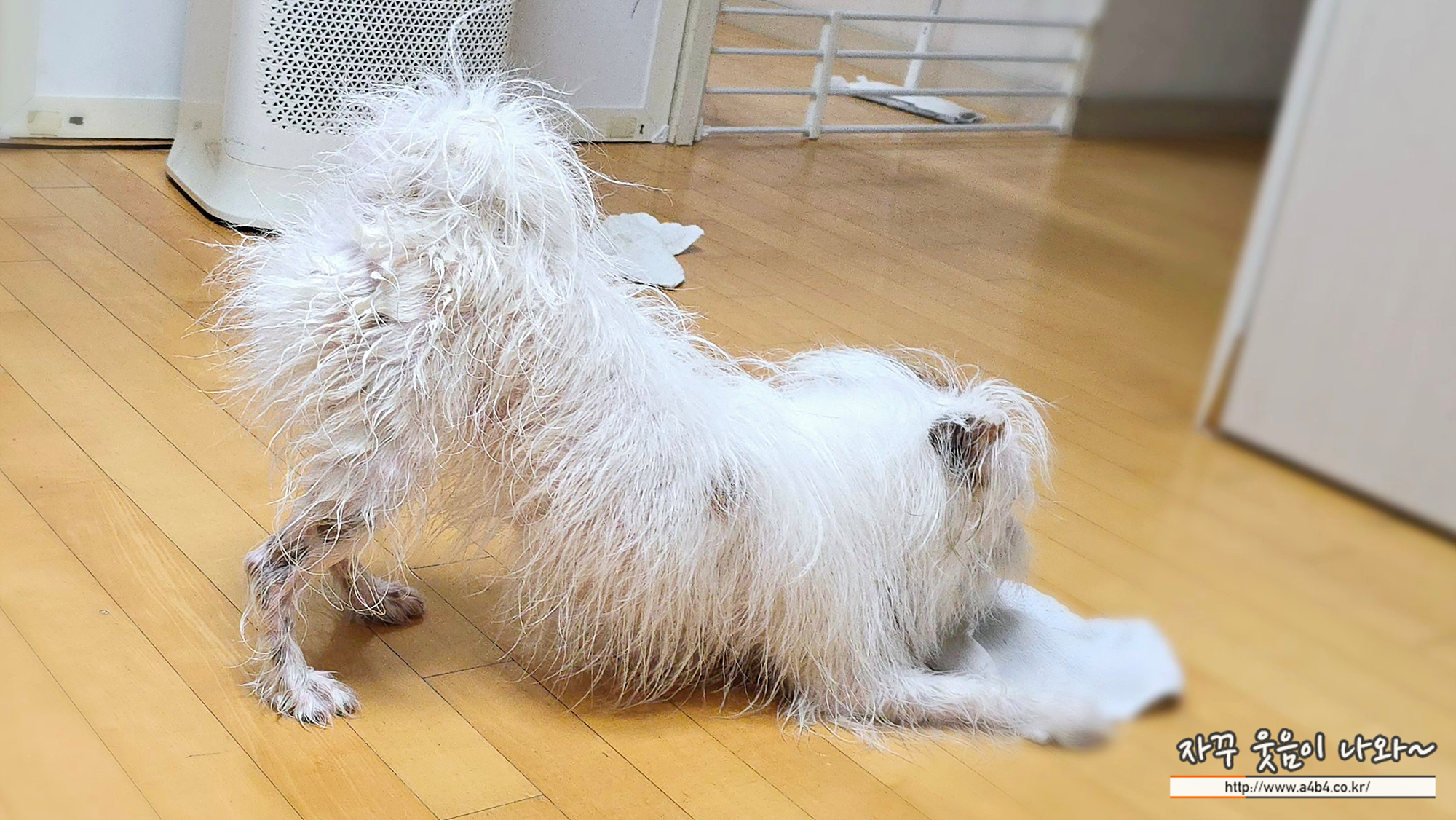 목욕 잘 끝내고 수건과 드라이로 살살 말리고... 하이포닉 샴푸로 강아지 목욕이 끝났습니다.