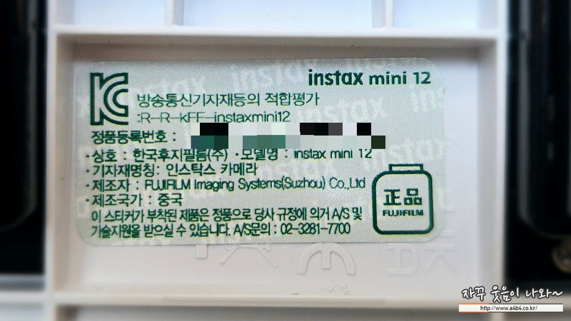 참고로 인스탁스AS의 경우 국내 정품만 무상수리가 가능하고, 해외직구 인스탁스 AS 및 병행수입 또는 별도로 구매한 제품의 경우 AS 불가능합니다. 물론 정품도 저와 같은 고객과실의 경우 유상수리 진행됩니다. 이 정품 인증서와 시리얼 번호 확인이 필요합니다.