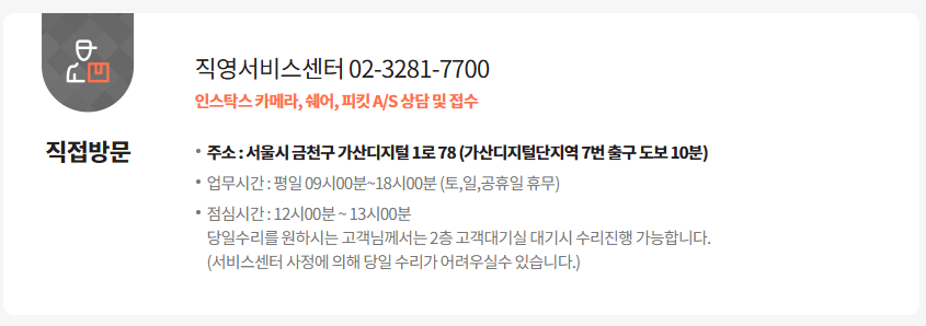 인스탁스 직영서비스센터는 서울 가산동에 딱 한 곳만 있습니다.