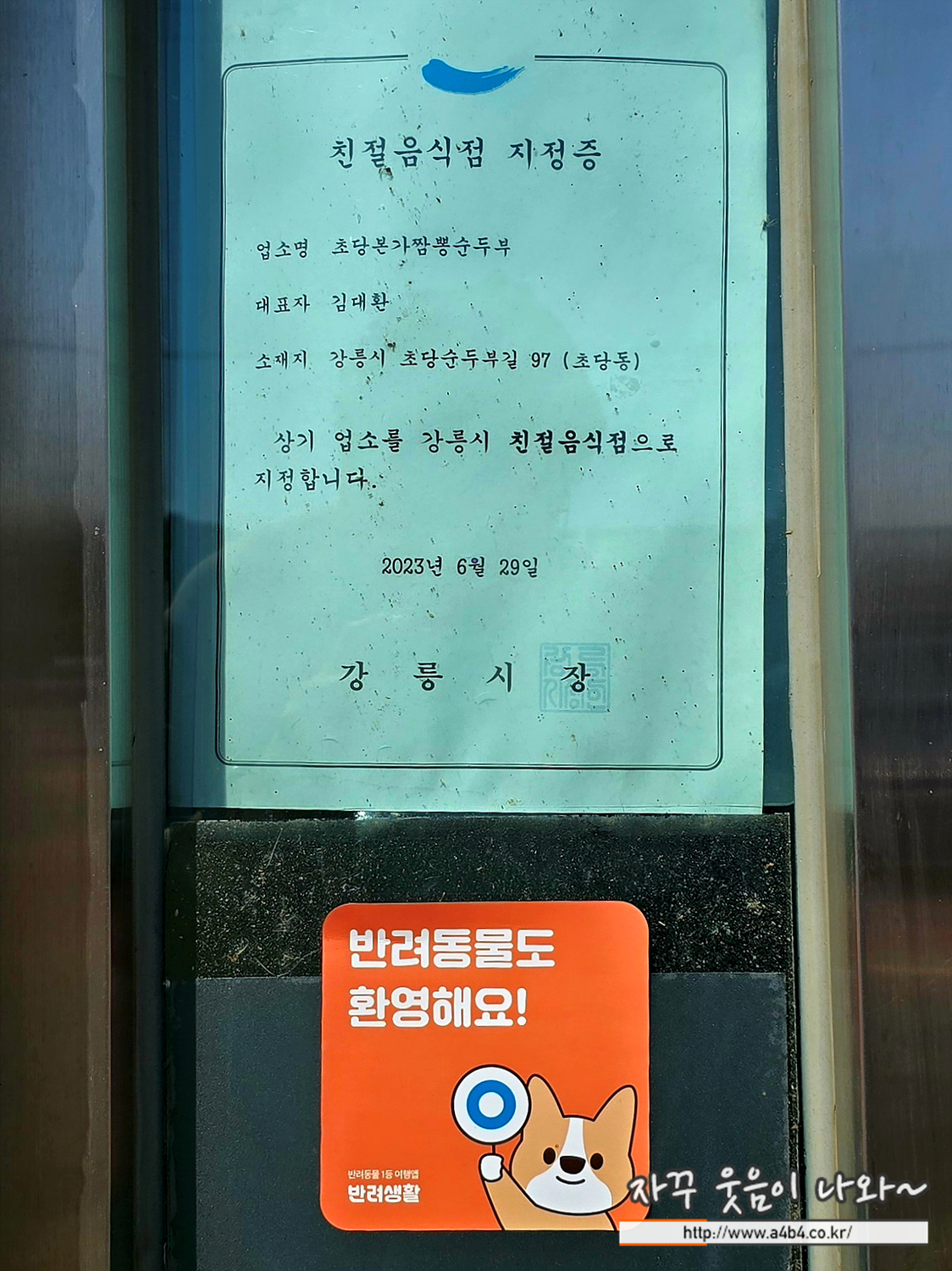 앞에서도 소개했지만 강릉 맛집 초당본가 짬뽕순두부는 강아지 동반 식당입니다.
