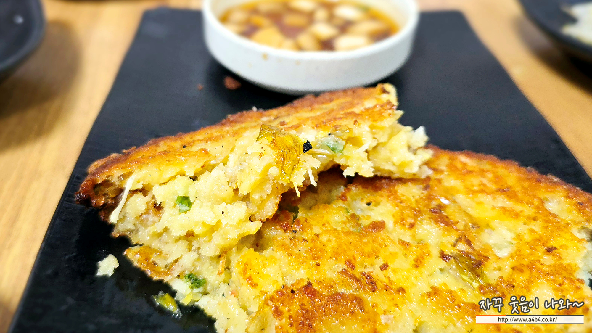 강원도 음식중 감자와 녹두, 메밀이 빠질 수 없죠. 저희는 사이드메뉴로 녹두전을 주문 했습니다.기대한 것보다는 크기가 크지 않아서 다소 실망했는데...