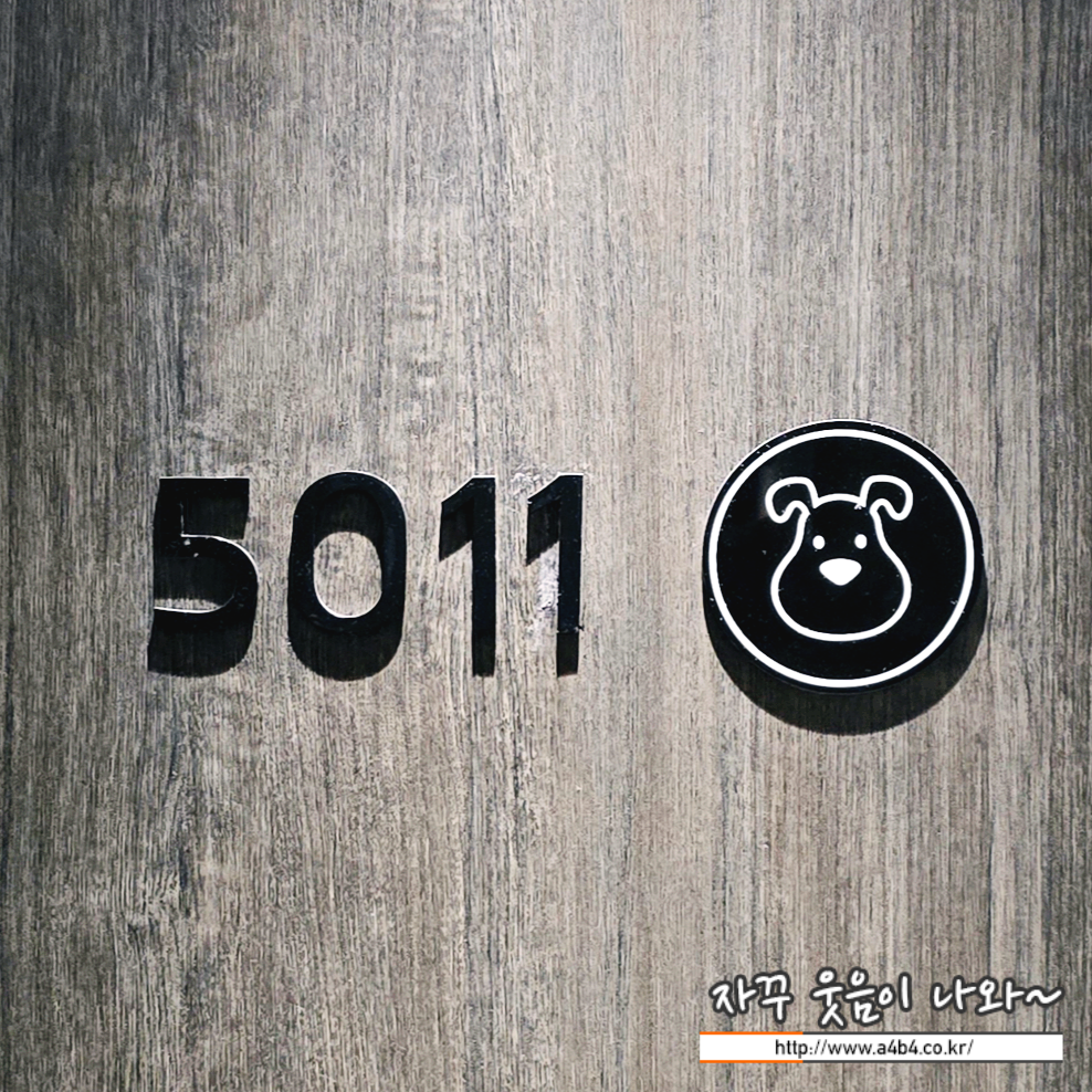 강아지동반 호텔인 세인트존스 호텔 펫룸 문에는 이렇게 강아지 뱃지가 부착되어 있습니다.