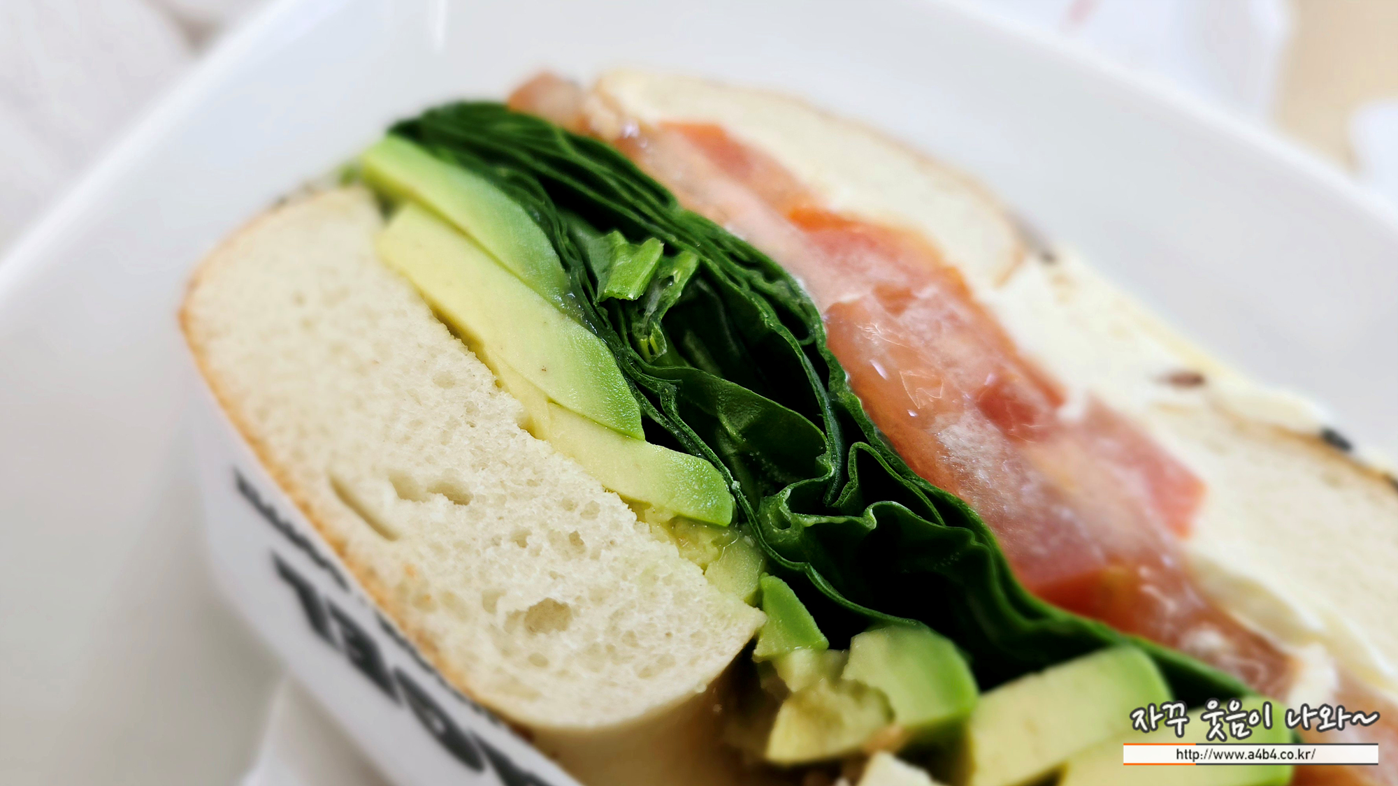 아보카도, 토마토와, 베이비 스피니치,토마토,시트러스 페타치즈 스프레드가 들어있는 베이커리 샌드위치 인데요.
