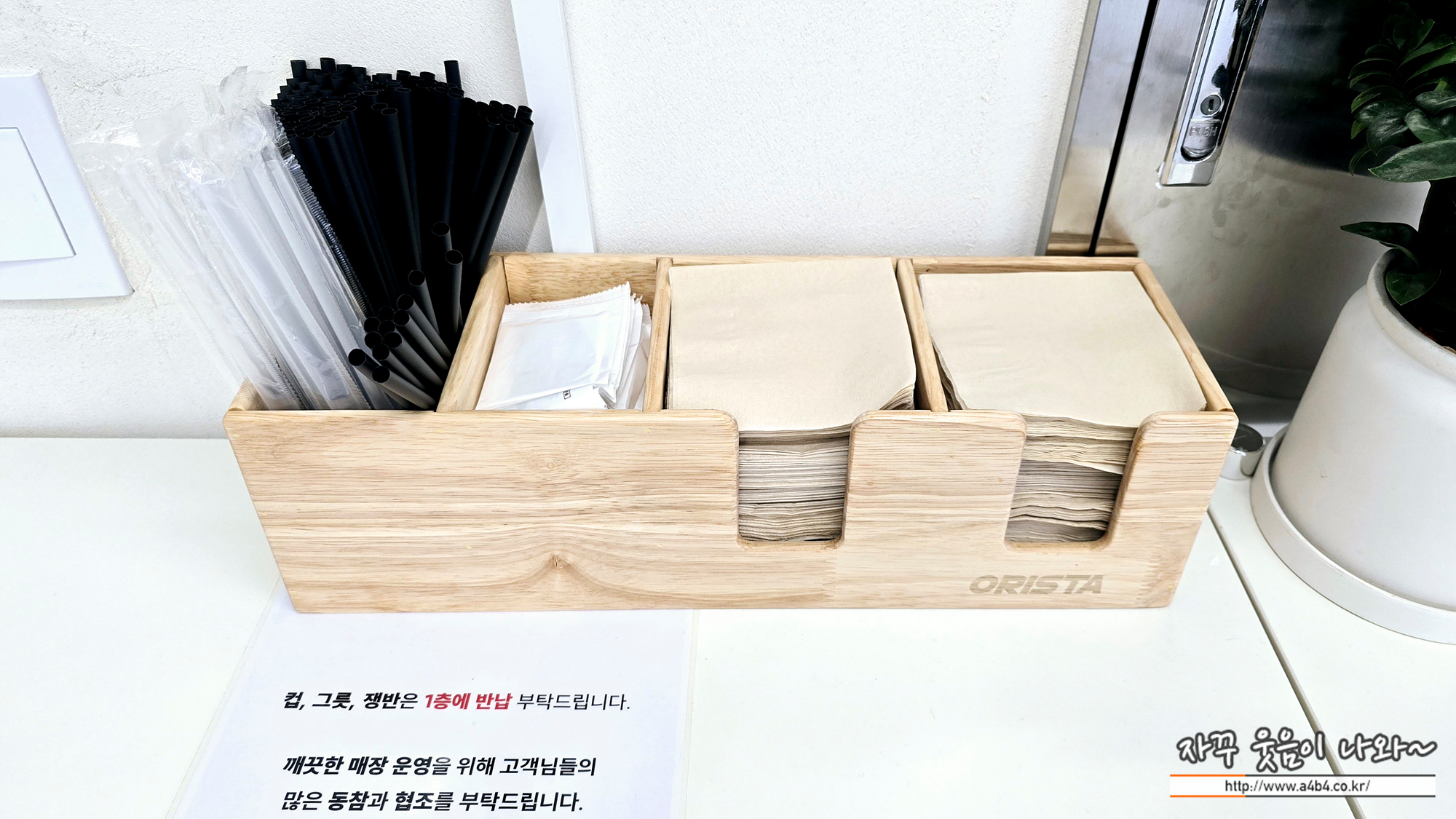 각 층에는 냅킨과 물티슈가 준비되어 있습니다.