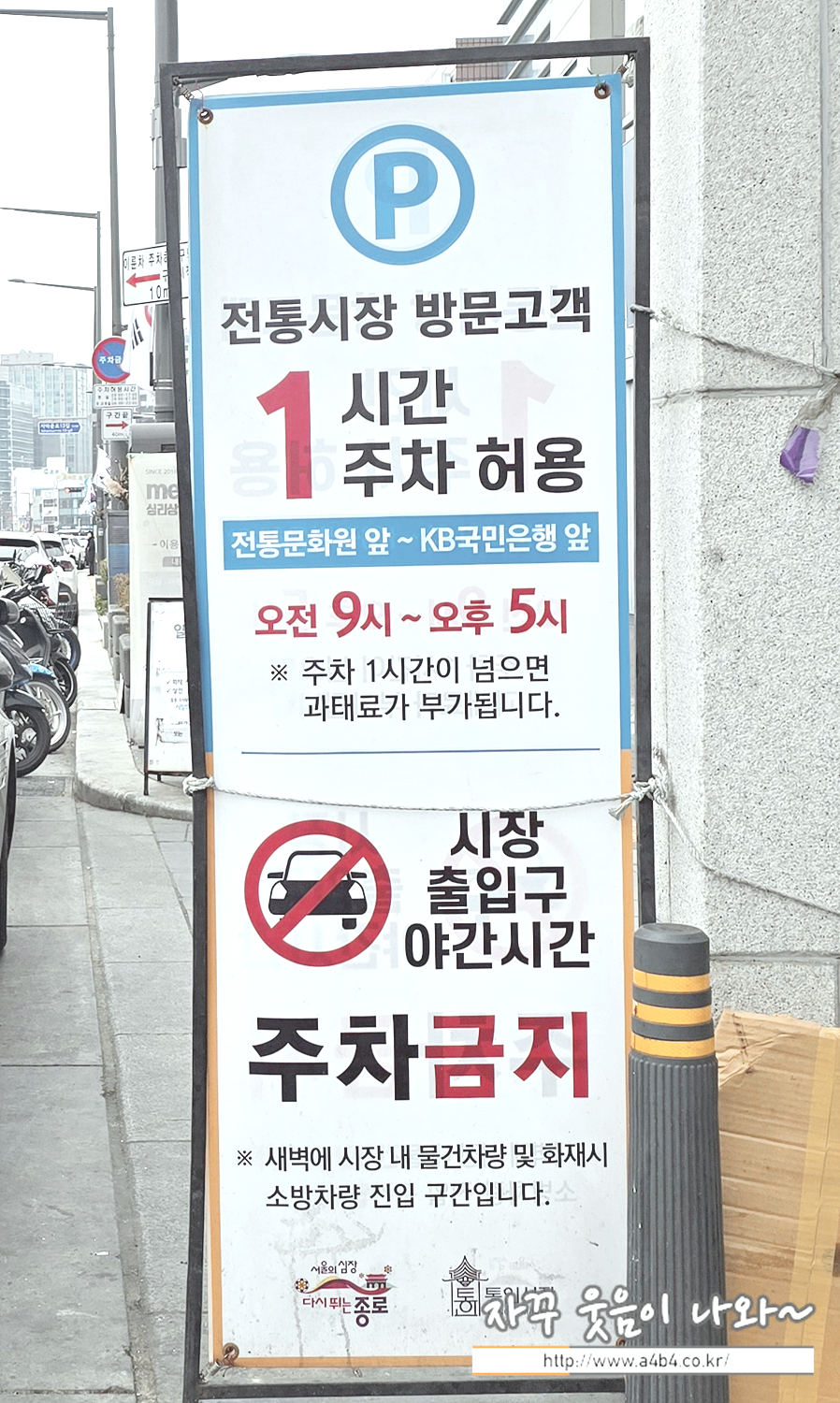 다만 통인시장 노상 주차장 이용은 1시간 주차가 허용되는데요. 주차시간 한 시간을 초과하면 단속한다고 합니다. 시장 이용하고, 엽전도식작에서 식사하면 한 시간은 빠듯한 느낌이 드는데요. 저도 50분만에 차를 빼다보니 정말로 통인시장 주차장 1시간 넘게 주차하면 과태료가 부과되는지는 모르겠네요.