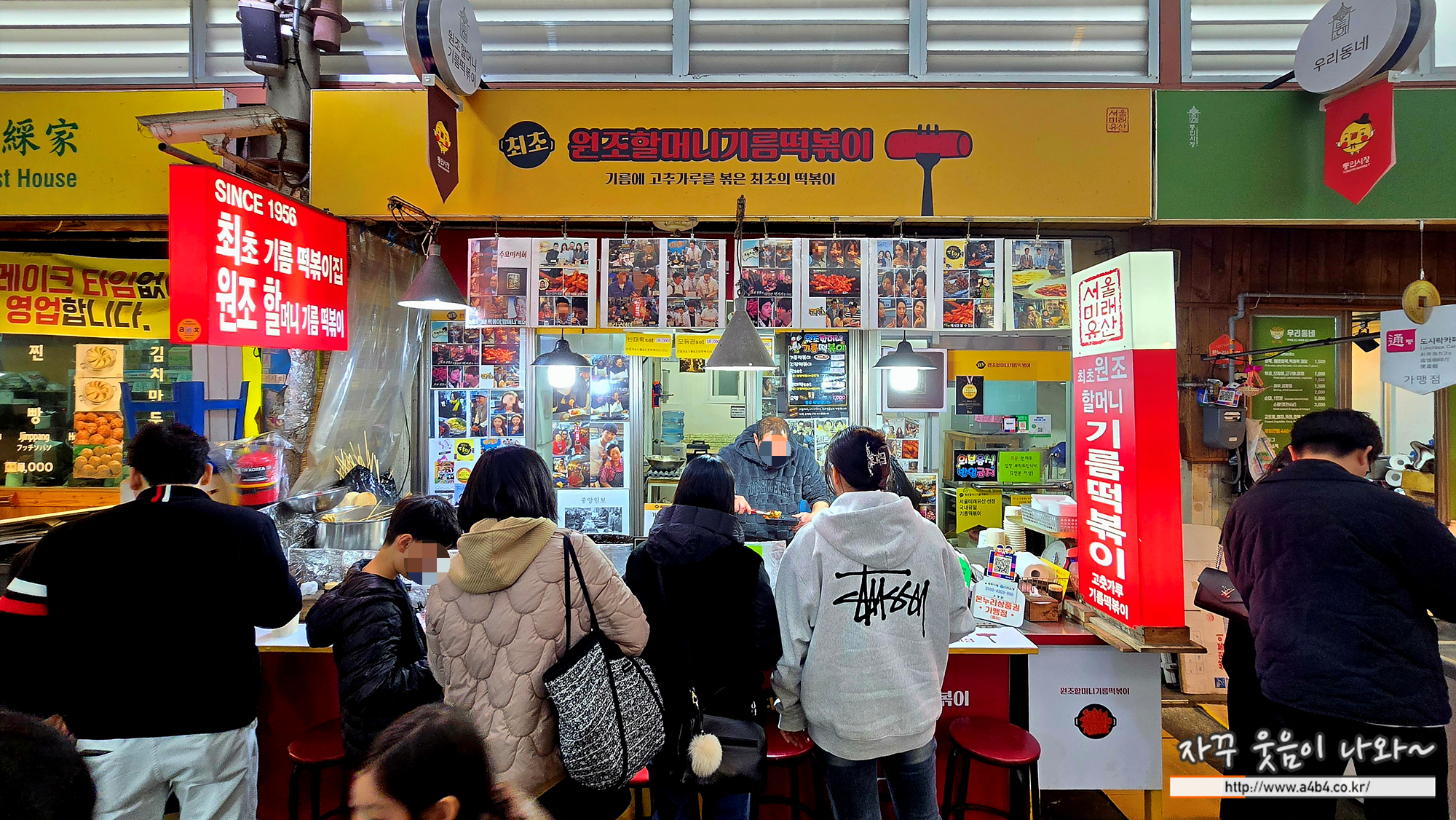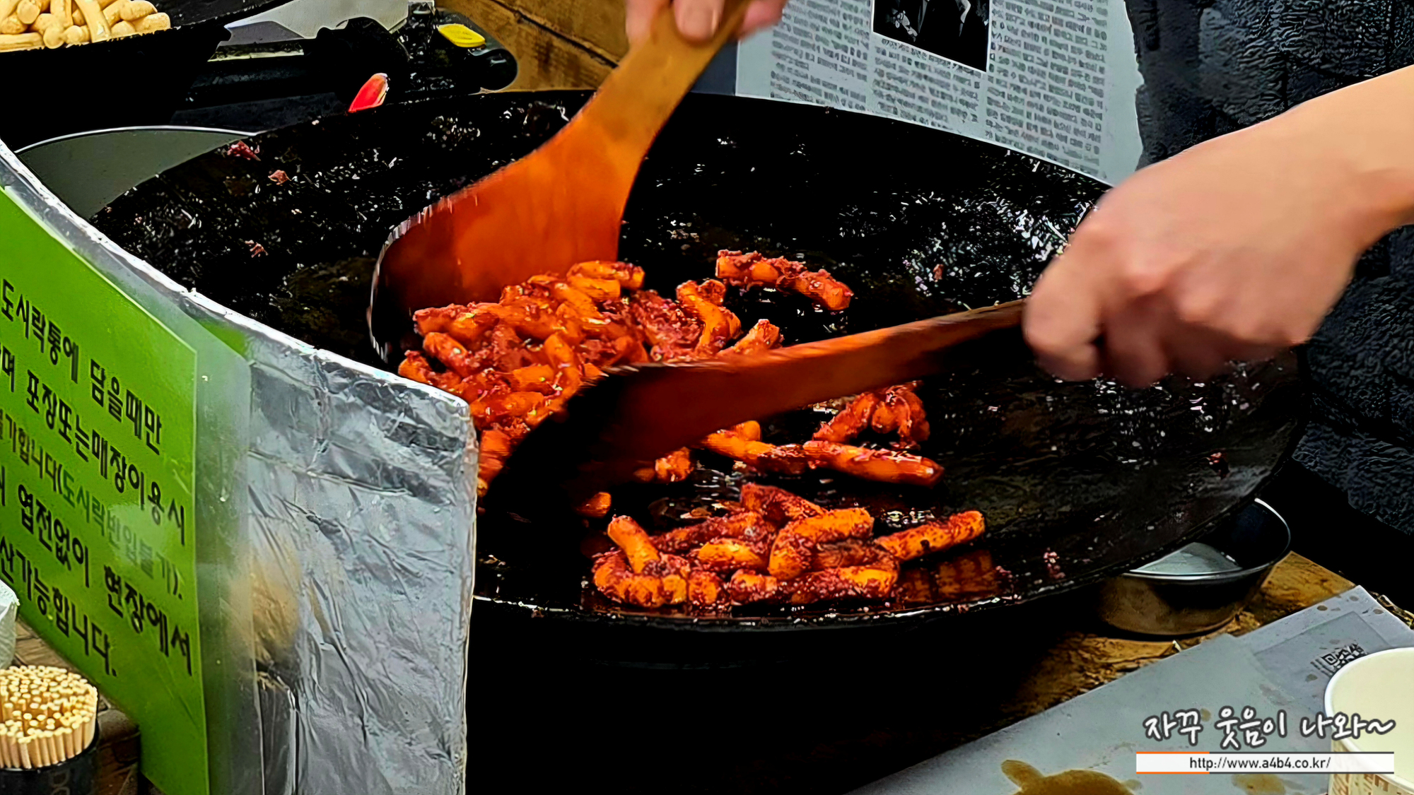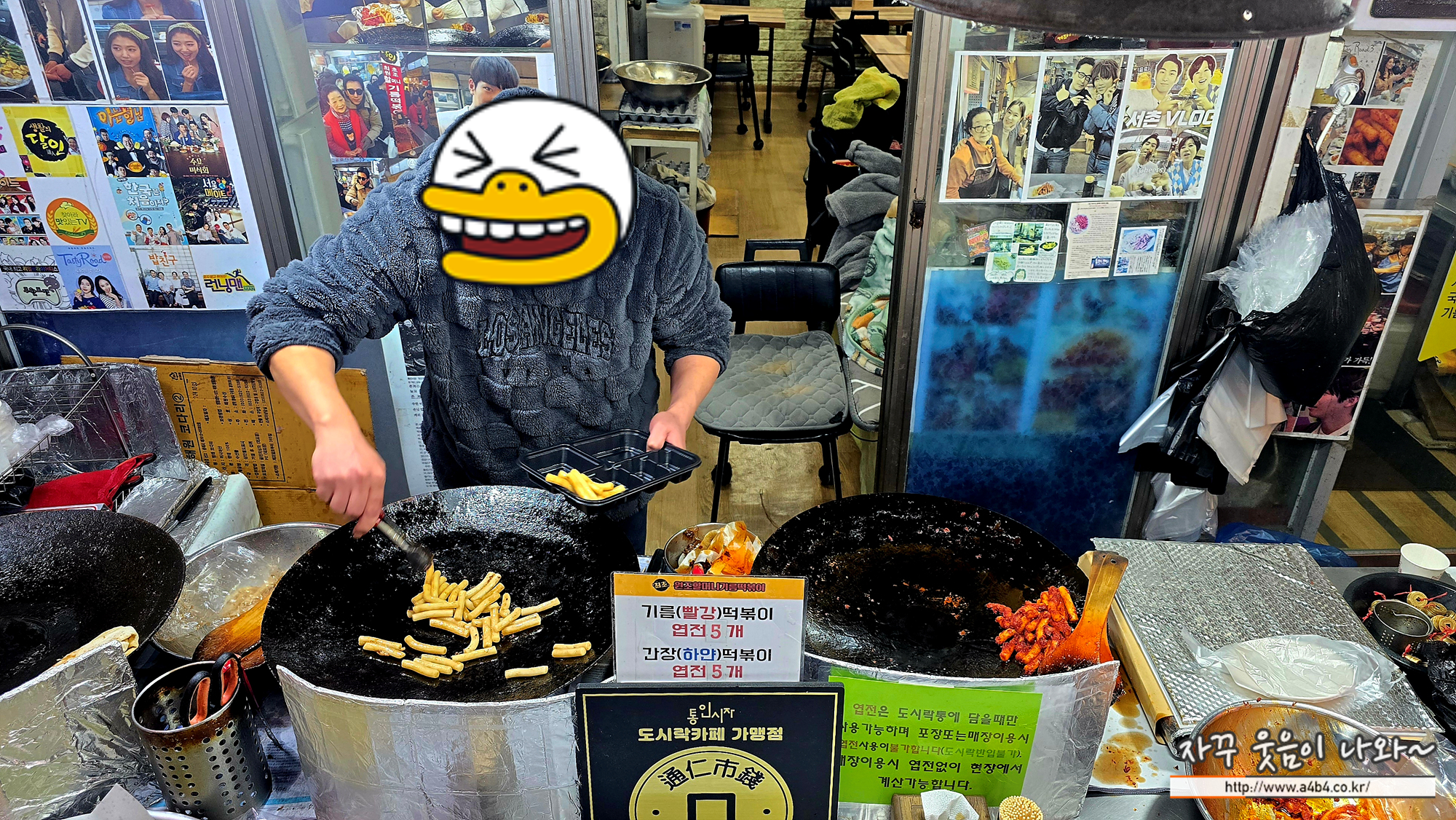역시나 이곳 통인시장 도시락카페에서 빠질수 없는 메뉴는 바로 기름떡볶이 입니다. 몇몇곳이 있는데요. 모두들 원조를 주장하고 있습니다. 저희는 줄서있는 사람들이 많지도 적지도 않은 통인시장 원조 할머니 기름떡볶이에서...